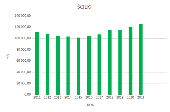 Ilość przyjętych i oczyszczonych ścieków dowożonych w 2021 roku wyniosła: 686,1 m3.