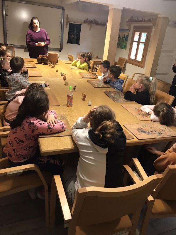 Dzieci uczestniczyły także w warsztatach edukacyjnych „ Nie święci garnki lepią”, podczas których zdobyli podstawowe wiadomości na temat garncarstwa. Obejrzeli archiwalne zdjęcia ilustrujące pracę garncarza, a także mogli usiąść przy tradycyjnym kole garncarskim. Na zakończenie zajęć samodzielnie wykonywali gliniane figurki, które zabrali ze sobą do domu. Na straganach umiejscowionych na środku galicyjskiego rynku uczniowie zakupili pamiątki i drobne upominki z wycieczki. Po zakończeniu zwiedzania Muzeum Budownictwa Ludowego oraz Parku Etnograficznego w Sanoku uczniowie udali się do autokaru. W drodze powrotnej zmęczeni i głodni uczestnicy wycieczki mogli skorzystać z bogatej oferty restauracji McDonald’s. Zadowoleni i pełni wrażeń uczniowie wraz z opiekunami wrócili do Kołaczyc.
