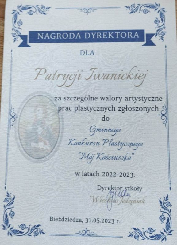 W kategorii klas VII-VIII Karolina Rak zajęła II miejsce, a wyróżnienie otrzymała Katarzyna Hendzel. Wyróżnienie specjalne Dyrektora Publicznej Szkoły Podstawowej im. Tadeusza Kościuszki w Bieździedzy, za szczególne walory artystyczne prac nadesłanych w latach 2022 i 2023, otrzymała Patrycja Iwanicka.