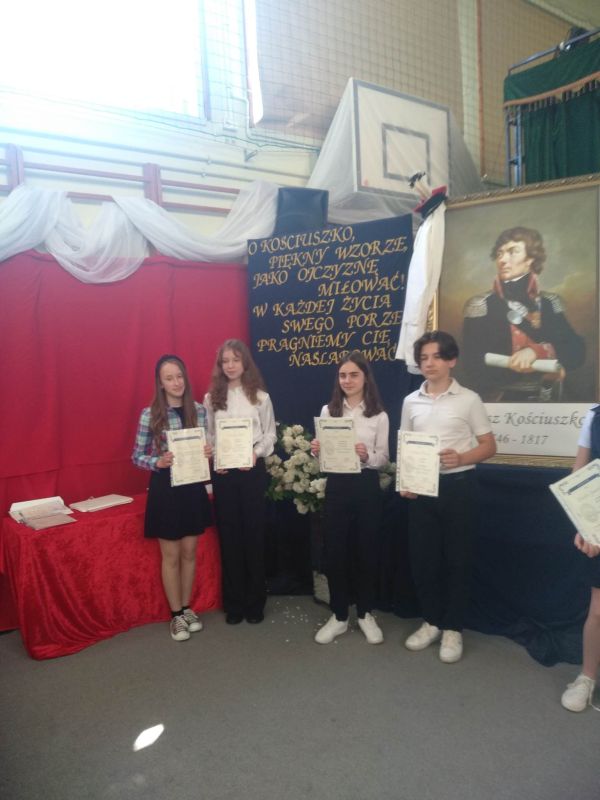 1 czerwca odbyło się uroczyste rozstrzygnięcie Wojewódzkiego Konkursu Literackiego „Mój Kościuszko”. Konkurs odbywał się pod honorowym patronatem Podkarpackiego Kuratora Oświaty, Starosty Jasielskiego i Burmistrza Kołaczyc. Zadaniem uczniów było napisanie pracy literackiej dotyczącej osoby Tadeusza Kościuszki. Prace oceniali nauczyciele szkół średnich naszego powiatu. Wręczenie nagród miało szczególny charakter, ponieważ odbyło się w czasie uroczystości nadania szkole sztandaru. Laureaci otrzymali pamiątkowe dyplomy i nagrody z rąk Pana Wicekuratora Oświaty Stanisława Fundakowskiego oraz przewodniczącej jury Pani Grażyny Żygłowicz.