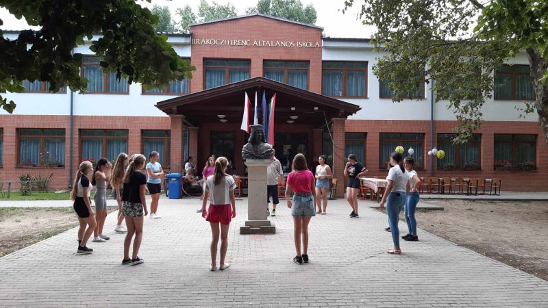 Nauczyciele na czele z Panem Dyrektorem partnerskiej szkoły II. Rakoci Ferenc Altalanos Iskola przywitali nas serdecznie. W tym dniu czekały jeszcze na naszą młodzież zabawy integracyjne i sportowe z węgierskimi kolegami oraz przysmaki z grilla.