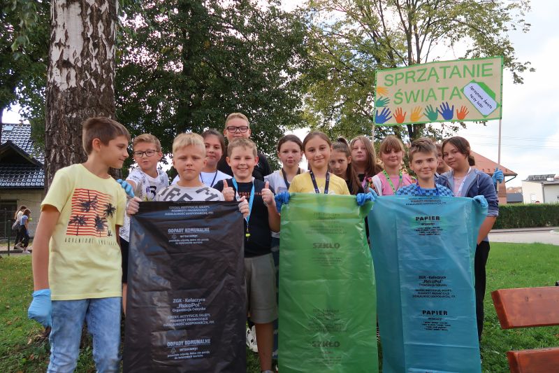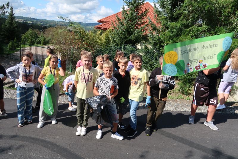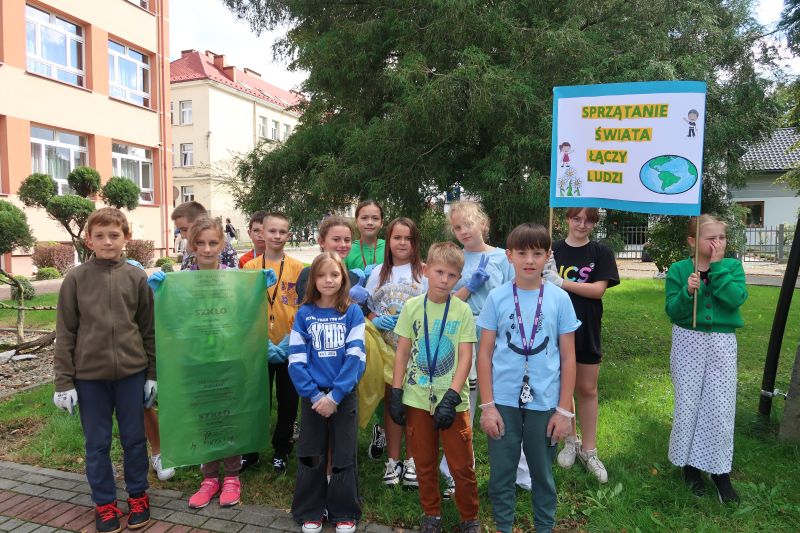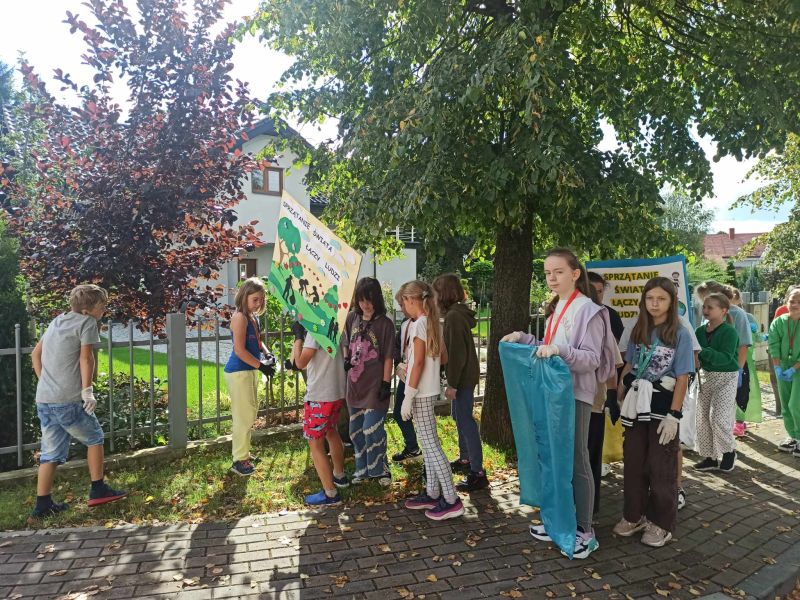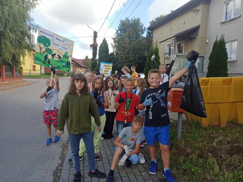 W dniu 15 września, jak co roku, nasza szkoła dołączyła do ogólnopolskiej akcji SPRZĄTANIE ŚWIATA – POLSKA 2023. Tegoroczna akcja miała szczególny charakter, ponieważ to już trzydziesty raz wyszliśmy w teren, aby posprzątać Polskę z zalegających w naturze śmieci! Fakt, że odbywa się ona nieprzerwanie od tylu lat, czyni ją tak wyjątkową w skali świata. Hasło tegorocznej, jubileuszowej kampanii – „Sprzątanie Świata łączy ludzi!” – stało się przewodnią myślą w naszych działaniach. W tym dniu najmłodsi uczniowie naszej szkoły uczestniczyli w różnorodnych zajęciach, które miały na celu promocję działań bardziej przyjaznych środowisku. Były to zajęcia plastyczne, gry, zabawy i konkursy o tematyce ekologicznej oraz projekcja filmów i programów edukacyjnych. Starsi uczniowie, natomiast, debatowali o stanie środowiska przyrodniczego i zmianach klimatycznych. O godz. 10.30 wszyscy uczniowie pod opieką swoich wychowawców, pełni energii i z uśmiechem na twarzy wyruszyli w teren, aby, jak miliony Polaków w tym dniu, posprzątać „swój mały kawałek Ziemi”. Pięknie wykonane plakaty i transparenty, z przewodnim hasłem tegorocznej akcji motywowały młodych ludzi do wspólnego działania. Efektem współpracy i dużego zaangażowania były pełne worki dobrze posegregowanych odpadów. W programie tegorocznej akcji znalazł się również SZKOLNY KONKURS EKOLOGICZNY, który był dla uczestników doskonałą okazją do sprawdzenia swojej wiedzy z zakresu ekologii i ochrony środowiska oraz umiejętności rozpoznawania ssaków objętych w Polsce ochroną gatunkową.