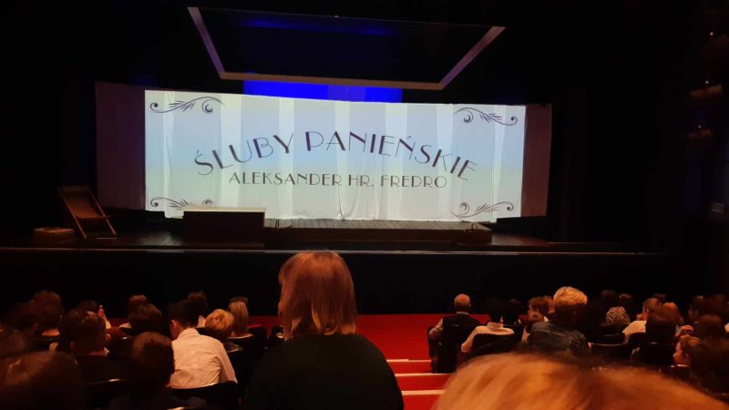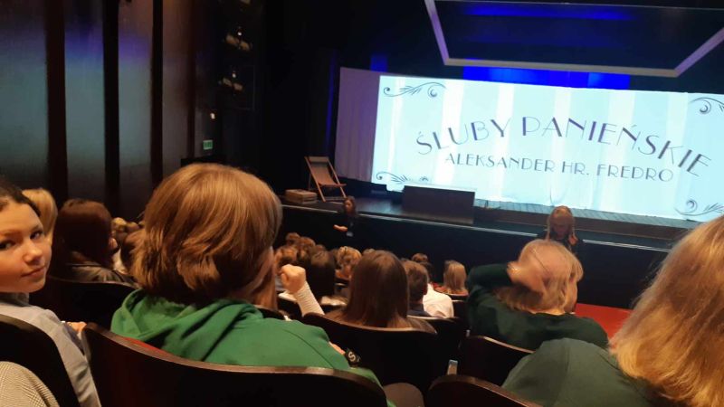 Jedna z najbardziej znanych komedii Aleksandra Fredry w reżyserii Wojciecha Malajkata. „Śluby Panieńskie” to zabawna, lekka i wciąż aktualna opowieść o odwiecznej wojnie płci, w której wszystkie chwyty są dozwolone. Nieśmiertelna tematyka bawi do łez i obnaża niezmienność ludzkich postaw w obliczu porywów serca. Najstarsze klasy naszej szkoły mogły zapoznać się osobiście ze sztuką w dniu 27.10.2023r. Występ aktorów został nagrodzony gromkimi brawami.