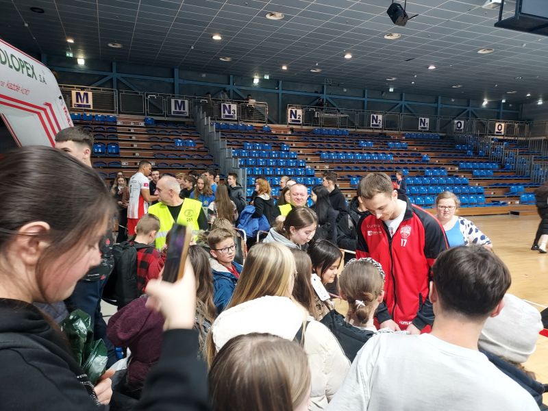 Po zakończonym meczu, wygranym przez rzeszowską drużynę 3:0, młodzież udała się na parkiet gdzie zbierała autografy oraz pozowała do zdjęć.