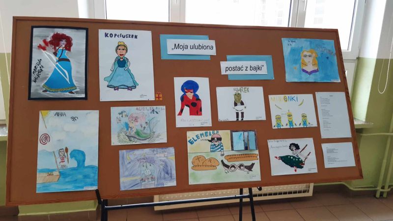 Dnia 8.12.2023r. został rozstrzygnięty konkurs plastyczny zorganizowany przez bibliotekę szkolną pt. ”Mój ulubiony bohater z bajki”. Głównymi celami konkursu było: