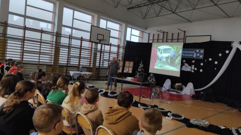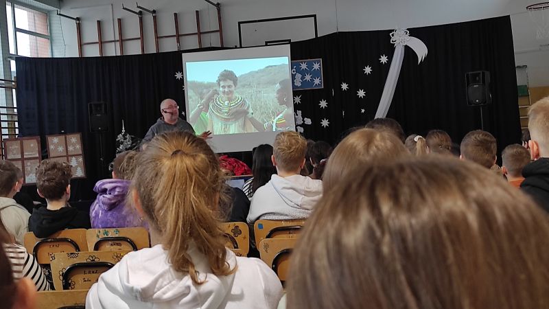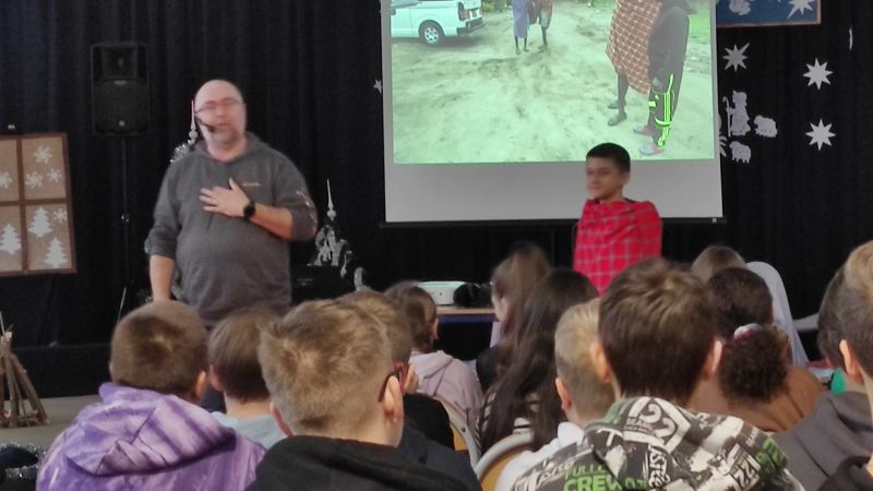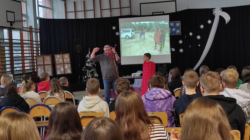 Dzisiaj (4 stycznia) w naszej szkole gościł Podróżnik – przedstawiciel firmy Trzask z Gorlic. Zaprezentował naszym uczniom zdjęcia z podróży do Kenii. Przedstawił ciekawostki z życia codziennego mieszkańców Kenii i problemy, z którymi borykają się mieszkańcy wiosek i miast. Uczniowie podziwiali zdjęcia groźnych zwierząt żyjących w kenijskich parkach narodowych. Nasz gość przywiózł i zaprezentował stroje, biżuterię i przedmioty użytkowe mieszkańców Kenii. Pokaz bardzo się podobał. Czekamy na kolejny – za rok.
