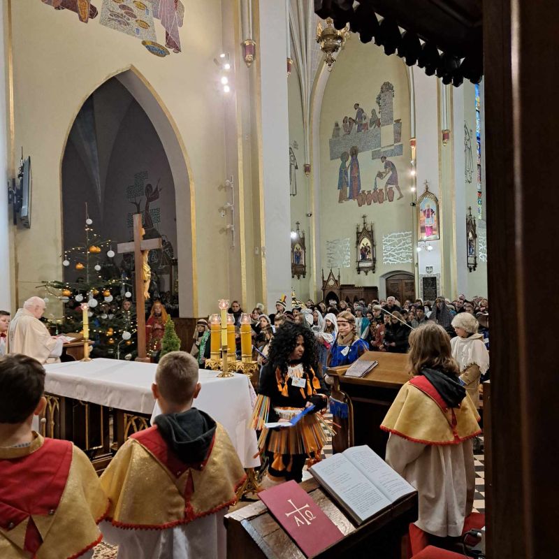 Akcja rozpoczęła się od Mszy św. z udziałem „przedstawicieli różnych ras i narodowości” oraz ich bliskich, którzy często byli zaangażowani w przygotowanie stroju, opiekę nad grupą, dowóz na wyznaczony rejon do kolędowania etc.- w tym dniu łączyli się duchowo, prosząc o błogosławieństwo dla odwiedzanych rodzin, kolędników misyjnych oraz dla rówieśników z krajów misyjnych, w tym roku w sposób szczególny, dla dzieci z Kolumbii.