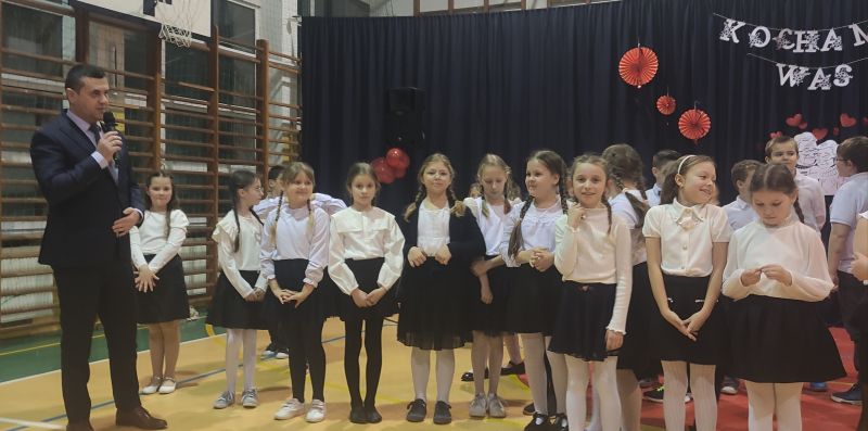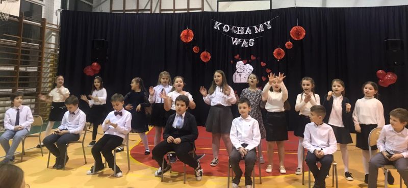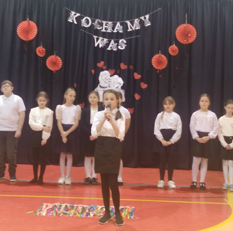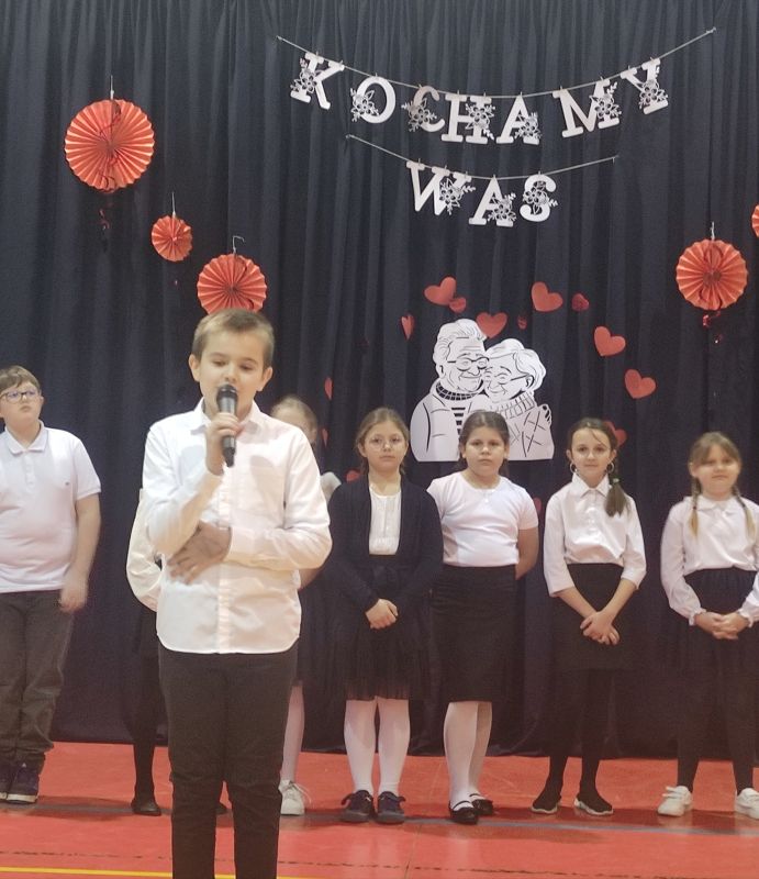 Babcia i Dziadek odgrywają niezwykle ważną rolę w życiu każdego dziecka. To dziadkowie myślą i troszczą się o swoje wnuki każdego dnia. To właśnie oni potrafią cierpliwie wysłuchać zwierzeń i pomagają realizować dziecięce marzenia. W podziękowaniu za ich miłość, trud i poświęcenie w dniu 22 stycznia 2024 roku uczniowie klasy drugiej i trzeciej przygotowali uroczystość z okazji Dnia Babci i Dziadka pod kierunkiem wychowawczyń p. Anny Płazińskiej, p. Anny Madejczyk oraz p. Bogusławy Słowik. Był to dzień, w którym gościło wiele uśmiechów, wzruszeń i radości... Zaproszeni goście, zostali bardzo serdecznie powitani przez wnuki, które wypatrywały ich z podekscytowaniem i wielką radością. Szkolną uroczystość z okazji Dnia Babci i Dziadka swoją obecnością uświetnili pan dyrektor Adam Iwanicki oraz pani dyrektor Alicja Namysł. W pięknie udekorowanej sali gimnastycznej mali artyści z przejęciem prezentowali swoje umiejętności wokalne, recytatorskie oraz taneczne. Za swoje zaangażowanie i piękne występy mali aktorzy otrzymali burzę zasłużonych braw. Był to niezwykły dzień nie tylko dla dzieci, ale przede wszystkim dla ich Babć i Dziadków, którzy mogli podziwiać swoje ukochane wnuki. Na zakończenie uroczystości pan dyrektor Adam Iwanicki w ciepłych słowach podziękował za przygotowanie programu artystycznego oraz pogratulował dziadkom wspaniałych wnucząt. Życzył wszystkim wielu szczęśliwych lat w zdrowiu i pogodzie ducha. Uroczystość zwieńczył słodki poczęstunek, przygotowany przez rodziców, podczas którego nie brakowało okazji do rozmów i wspomnień.