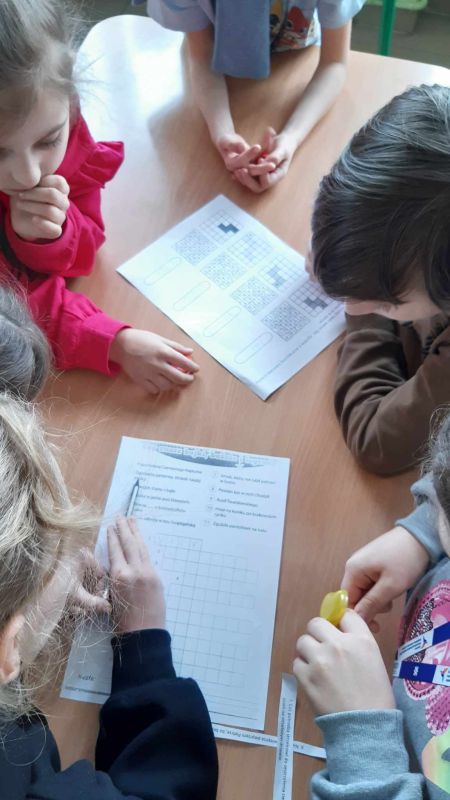 W naszej szkole akcja ta odbyła się po raz trzeci i trwała od 19- 23 II. Uczniowie klas starszych na lekcjach języka polskiego ćwiczyli wymowę „łamańców językowych”, poprawiali błędnie użyte związki frazeologiczne, chwytali „byki” za rogi, sprawdzali swoje umiejętności z zakresu gramatyki i ortografii, grali w Kahoota, a klasy V rywalizowały o tytuł Mistrza Języka Ojczystego. Dzieci przebywające na świetlicy wzięły udział w konkursie sprawdzającym ich znajomość języka polskiego. Rozwiązywały rebusy, łamigłówki, ciągi słowne, tworzyły wyrazy. Ponadto, przez cały tydzień na parterze na holu znajdowały się zadania związane z językiem polskim. Chętni uczniowie mogli w czasie przerw sprawdzać i poszerzać swoją wiedzę.