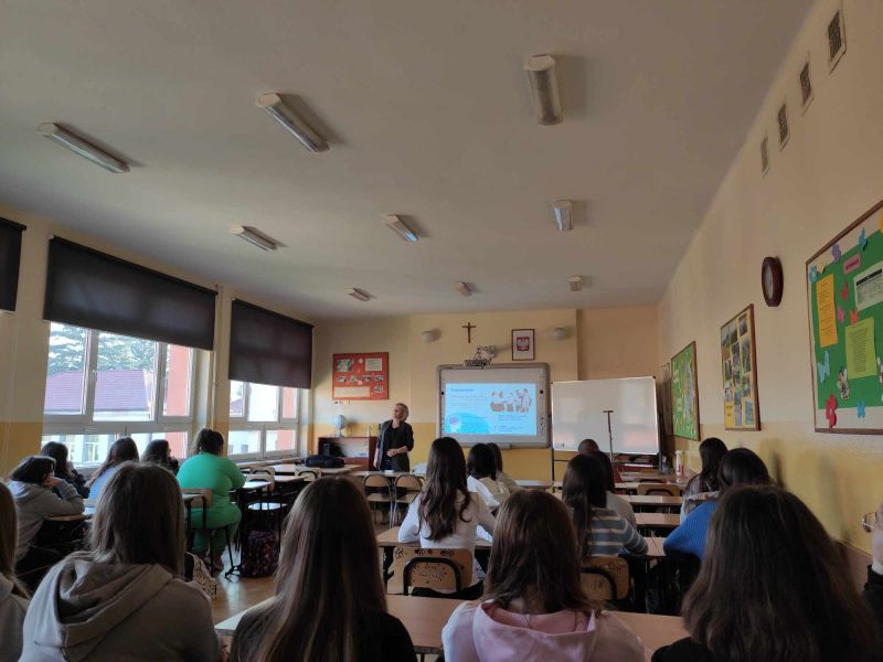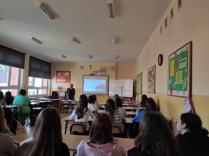 4 marca 2024 roku uczennice klas VI, VII a oraz VII b, wzięły udział w programie edukacyjnym pt.„ Między nami kobietkami” zalecanym przez MENiS w ramach zajęć prozdrowotnych. Tematem prelekcji były problemy okresu dojrzewania, pierwsze tajniki dorosłości i praktyczne wskazówki, jak radzić sobie w trudnych dla kobiet sytuacjach. Prelekcja cieszyła się dużym zainteresowaniem, a jego uczestniczki otrzymały specjalne zestawy edukacyjne: książeczki informujące o zmianach w ich organizmie w okresie dojrzewania oraz pakiety próbek produktów sanitarnych.