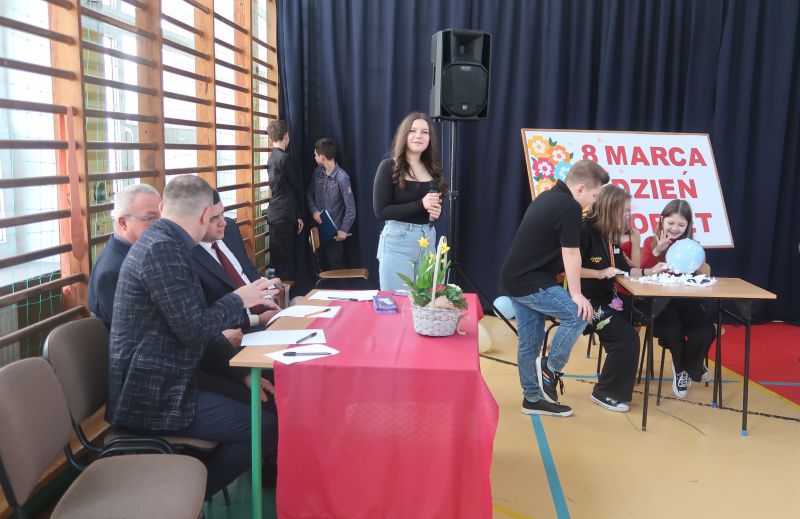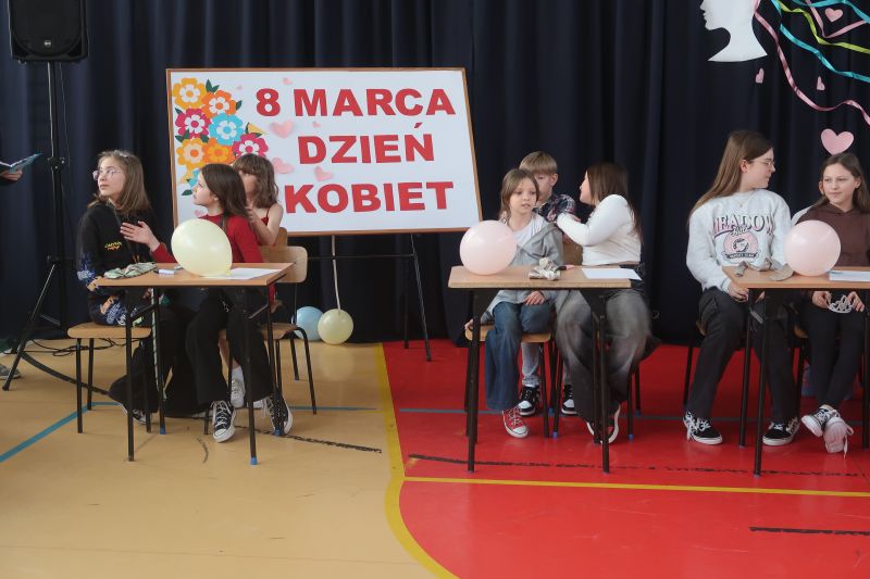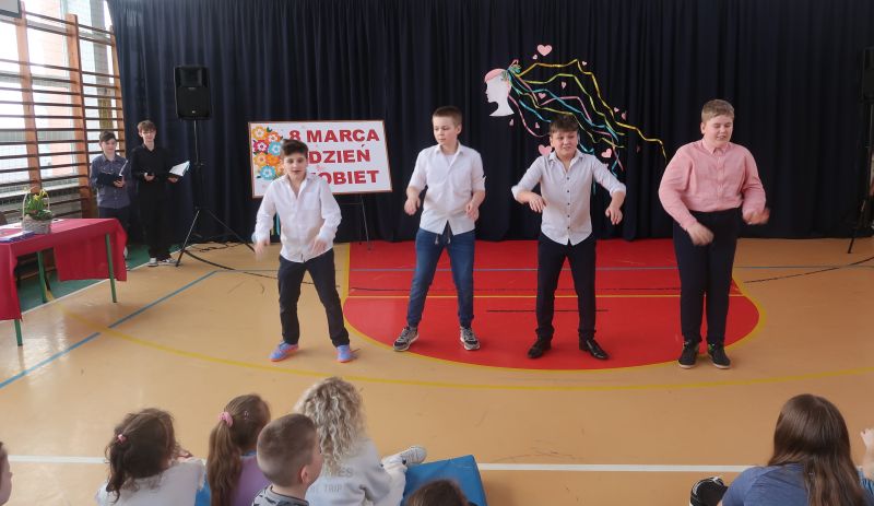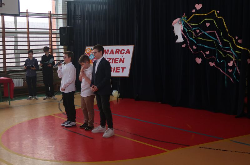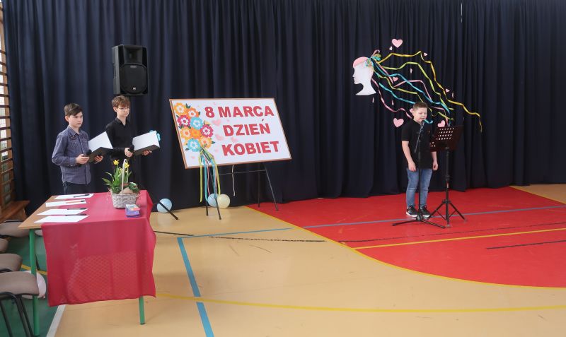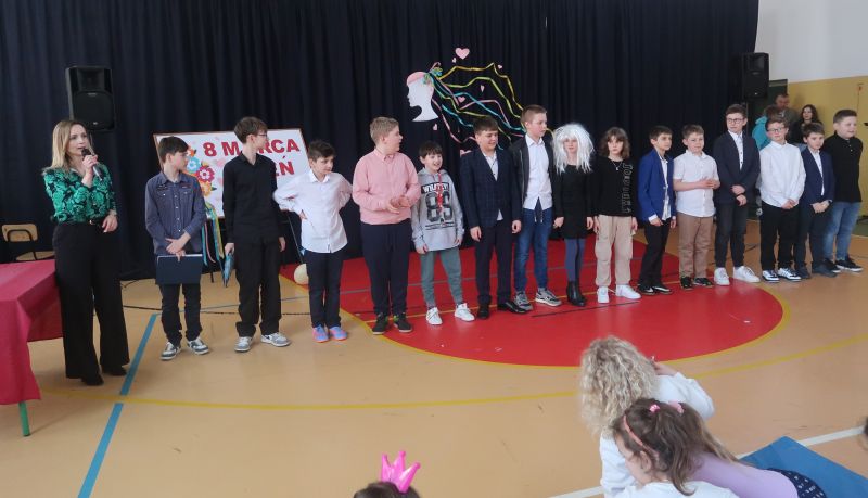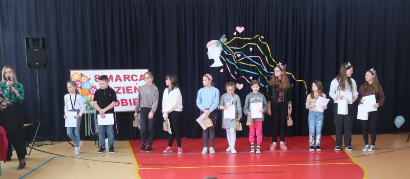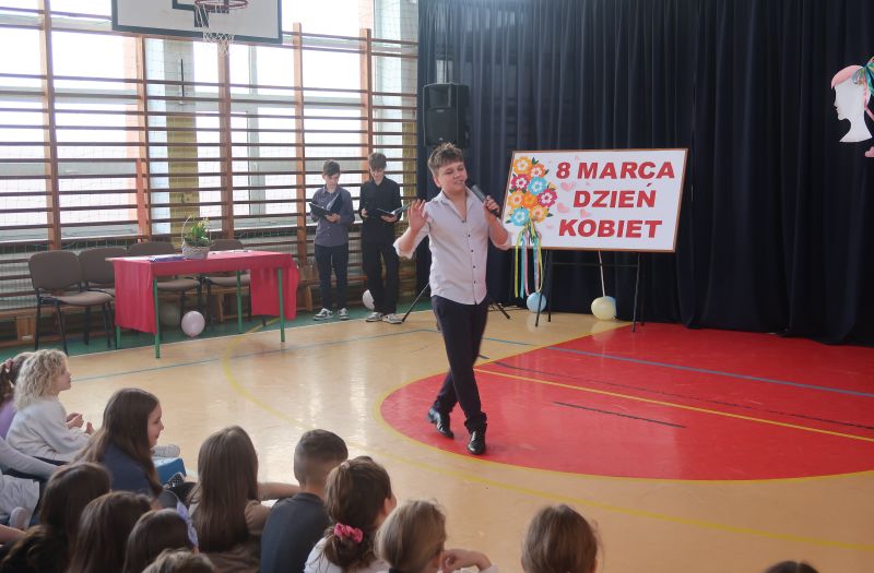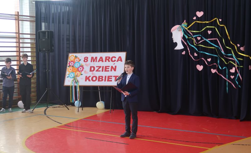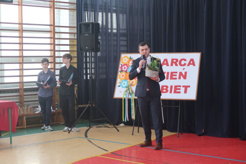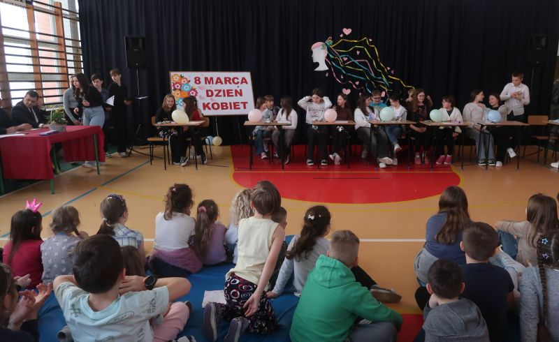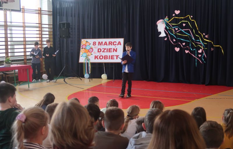 8 marca – Międzynarodowy Dzień Kobiet – na stałe wpisał się do szkolnego kalendarza. Z okazji tego sympatycznego marcowego święta w naszej szkole pojawiły się kwiaty, życzenia i drobne upominki dla małych i tych większych kobiet. W tym szczególnym dniu, męska społeczność naszej szkoły przygotowała dla wszystkich naszych Pań niespodziankę w postaci uroczystej akademii. Były wiersze oraz piosenki, życzenia i kwiaty. Młodzi mężczyźni oraz męska część grona pedagogicznego zadbali o to, aby na twarzach wszystkich Pań i dziewcząt zagościł uśmiech. Nie zabrakło również serdecznych życzeń pana dyrektora Adama Iwanickiego, skierowanych do wszystkich kobiet, zarówno tych dużych jak i małych.