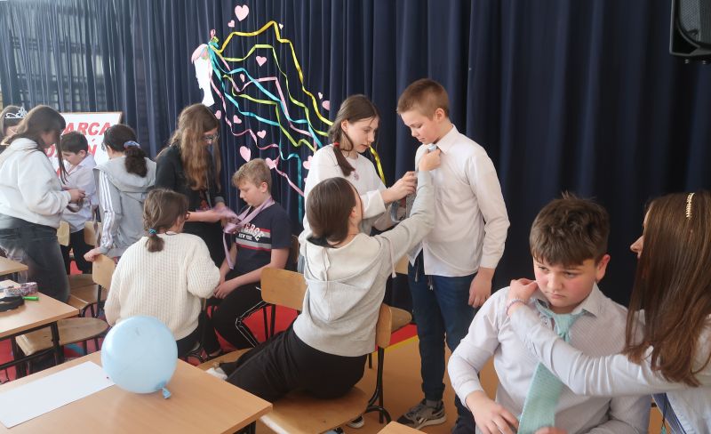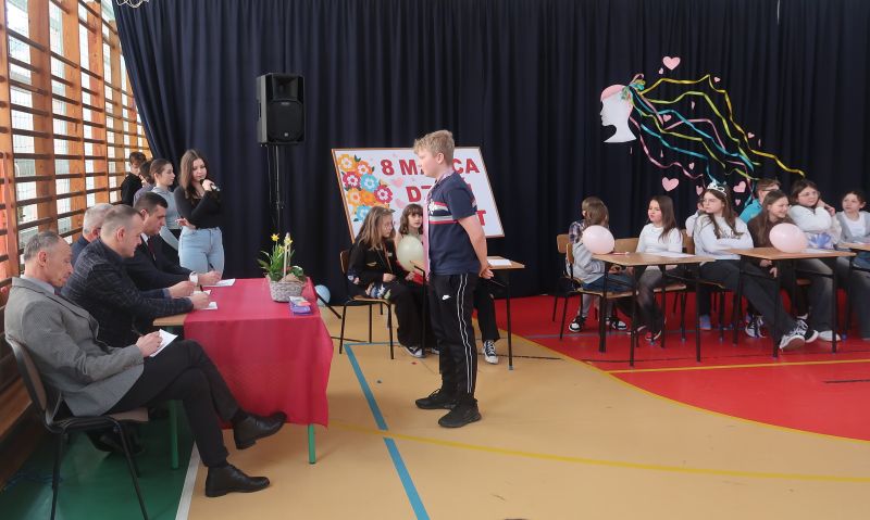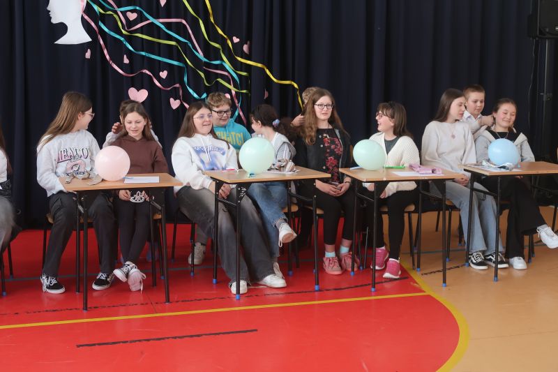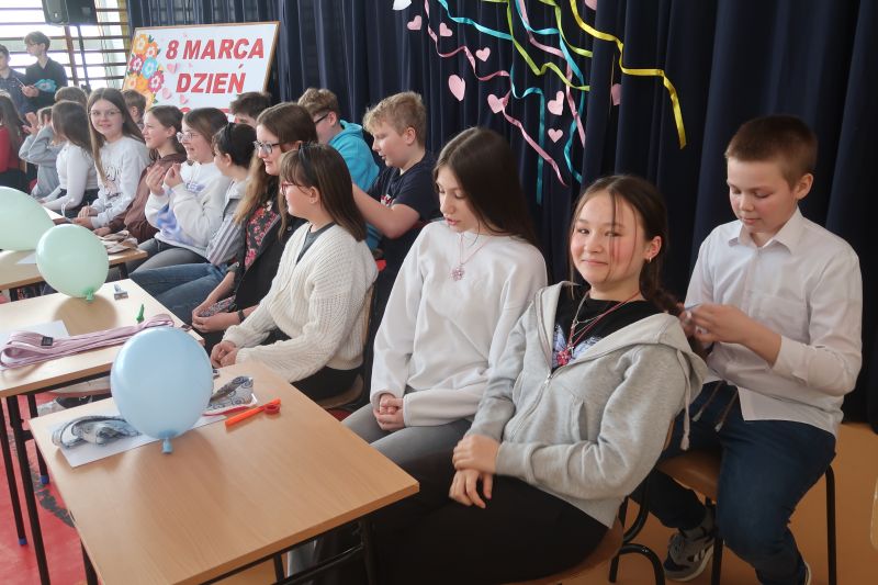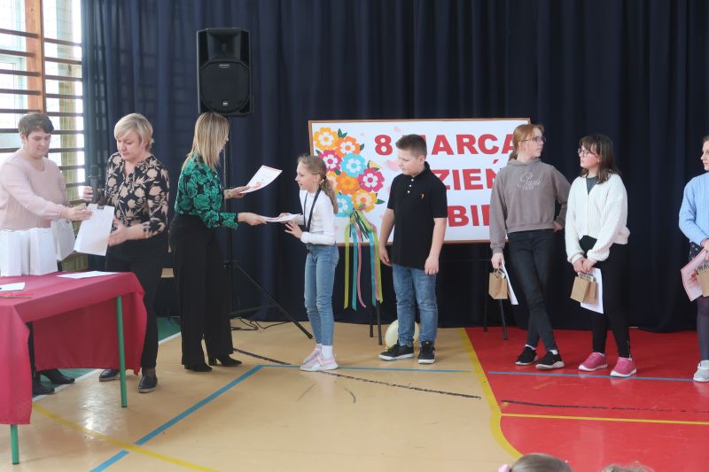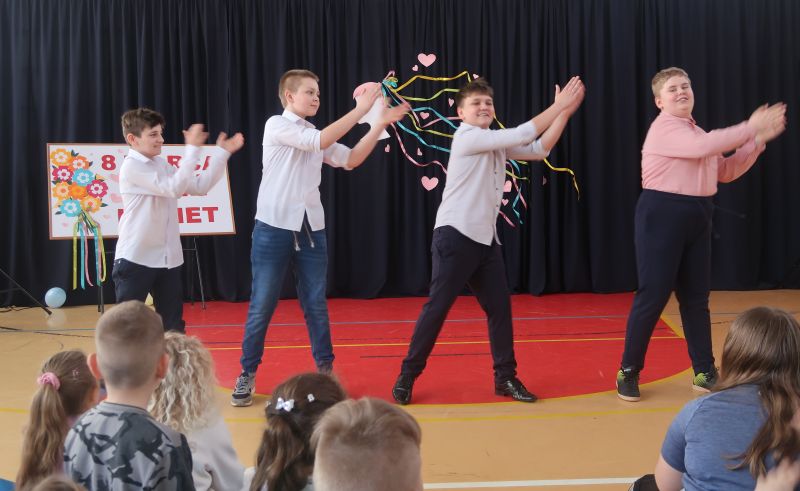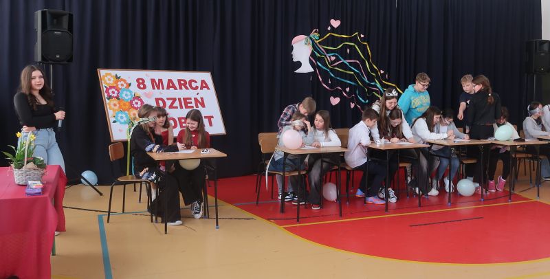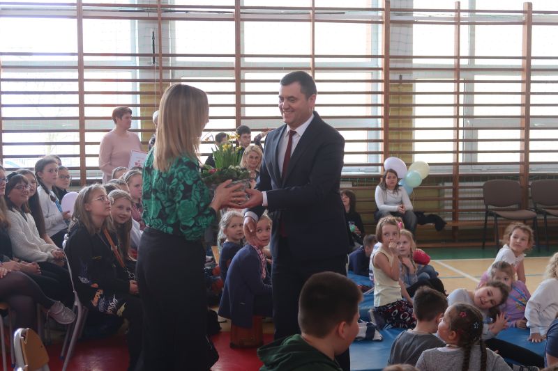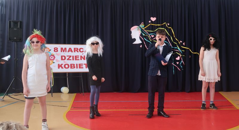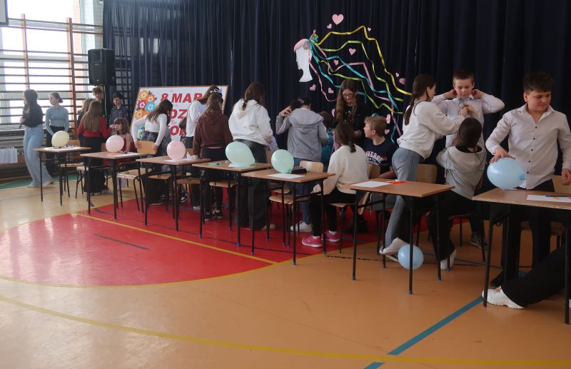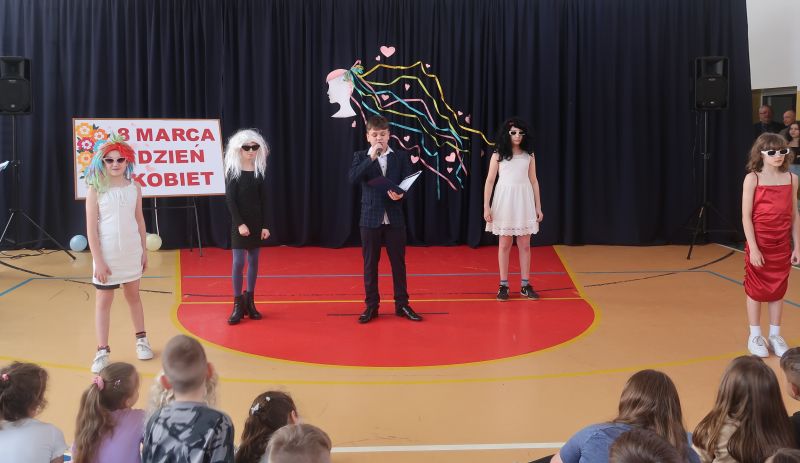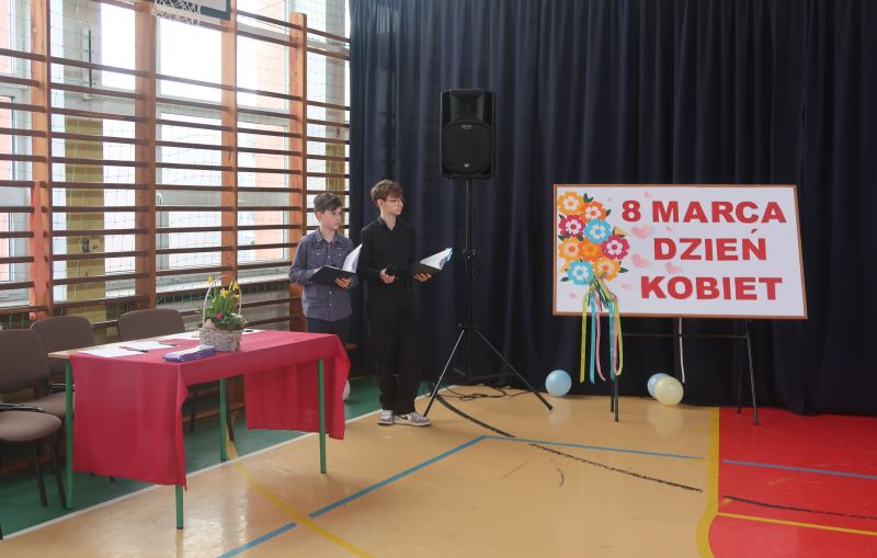 8 marca – Międzynarodowy Dzień Kobiet – na stałe wpisał się do szkolnego kalendarza. Z okazji tego sympatycznego marcowego święta w naszej szkole pojawiły się kwiaty, życzenia i drobne upominki dla małych i tych większych kobiet. W tym szczególnym dniu, męska społeczność naszej szkoły przygotowała dla wszystkich naszych Pań niespodziankę w postaci uroczystej akademii. Były wiersze oraz piosenki, życzenia i kwiaty. Młodzi mężczyźni oraz męska część grona pedagogicznego zadbali o to, aby na twarzach wszystkich Pań i dziewcząt zagościł uśmiech. Nie zabrakło również serdecznych życzeń pana dyrektora Adama Iwanickiego, skierowanych do wszystkich kobiet, zarówno tych dużych jak i małych.