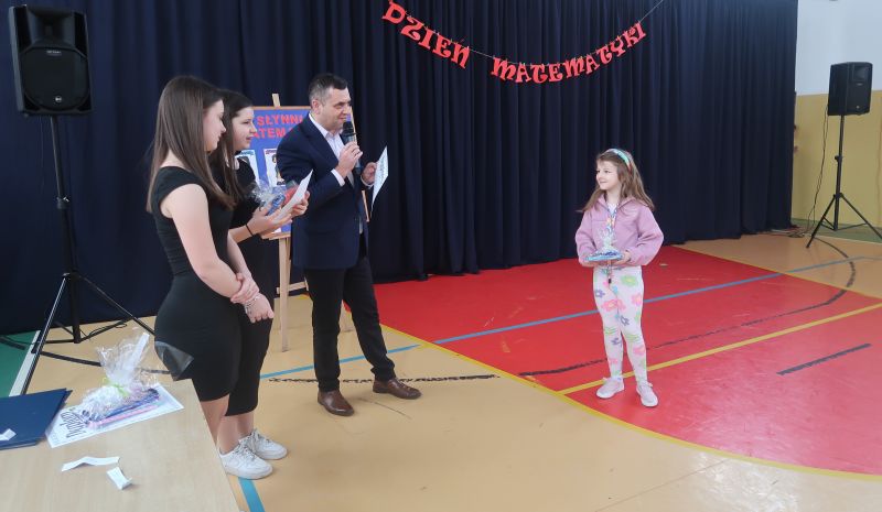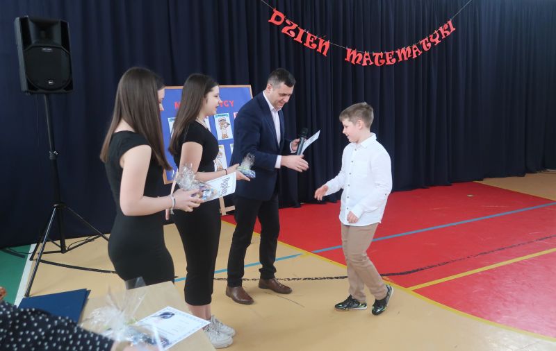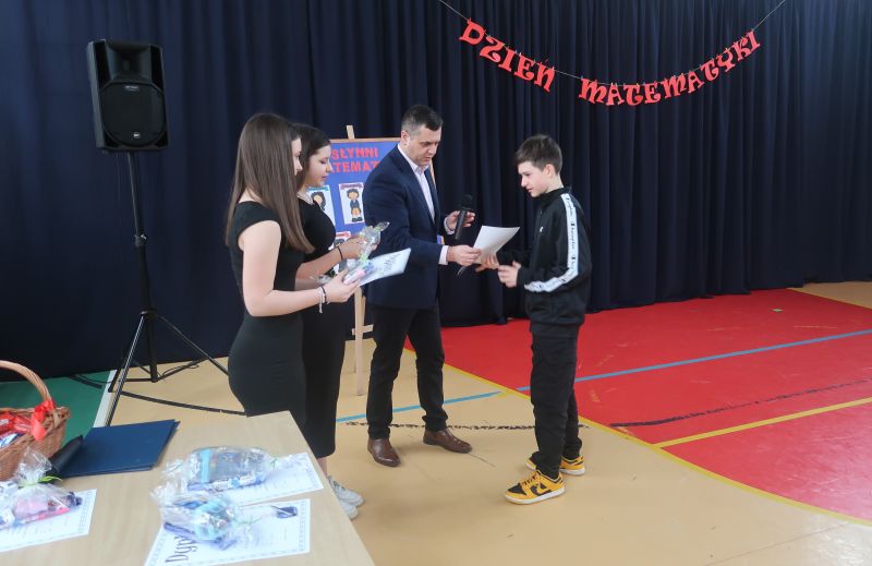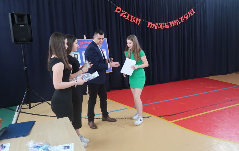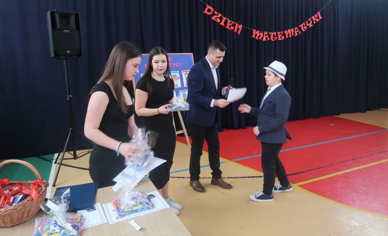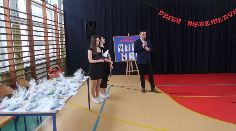 Na zakończenie, nastąpiło rozstrzygnięcie konkursu matematyczno-plastycznego na portret lub karykaturę sławnego matematyka. Konkurs przygotowała p. Małgorzata Skicka. Nagrody dla zwycięzców zostały wręczone przez pana dyrektora Adama Iwanickiego, który pogratulował wszystkim uczestnikom zaangażowania i kreatywności.