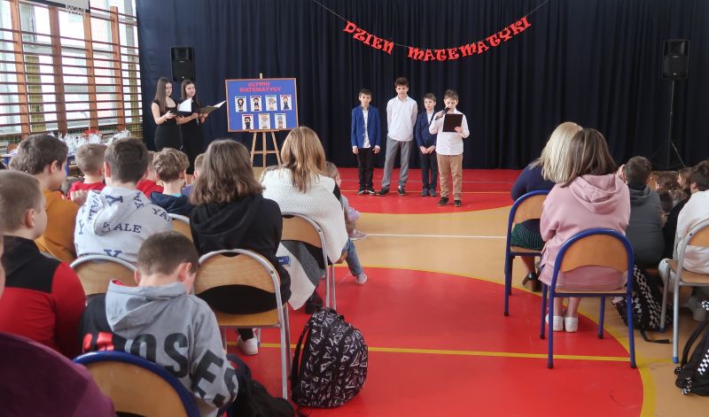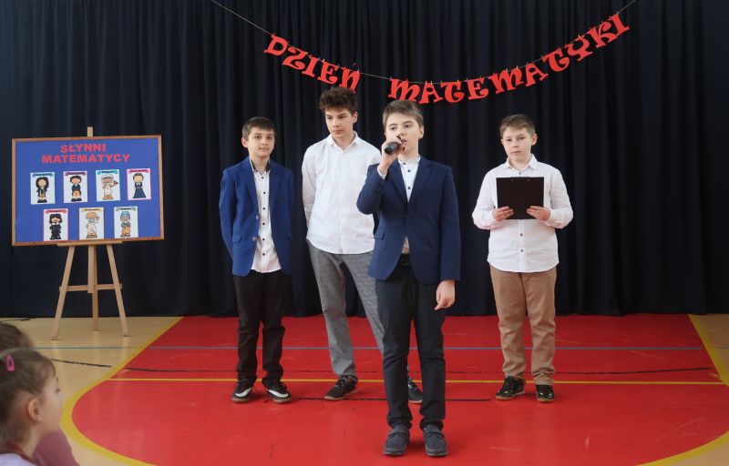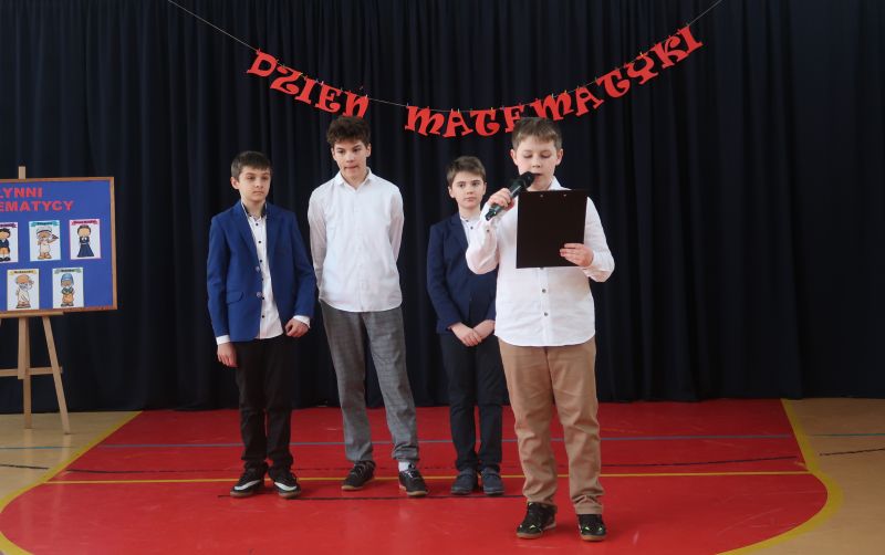 Następnie, uczniowie klasy 5b: Karol Cyran, Ignacy Maciejowski, Rafał Salwik i Jakub Namysł oraz Jakub Hendzel z klasy 7b, prezentowali swoje umiejętności recytatorskie, wygłaszając wiersze o tematyce matematycznej, w tym list do matematyki. Ich interpretacje były nie tylko wyrazem talentu, lecz także oddaniem hołdu sztuce matematycznej.