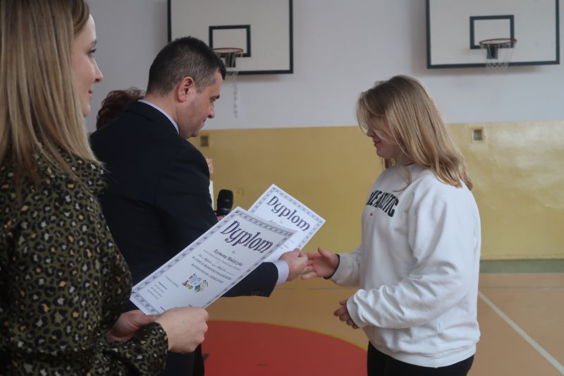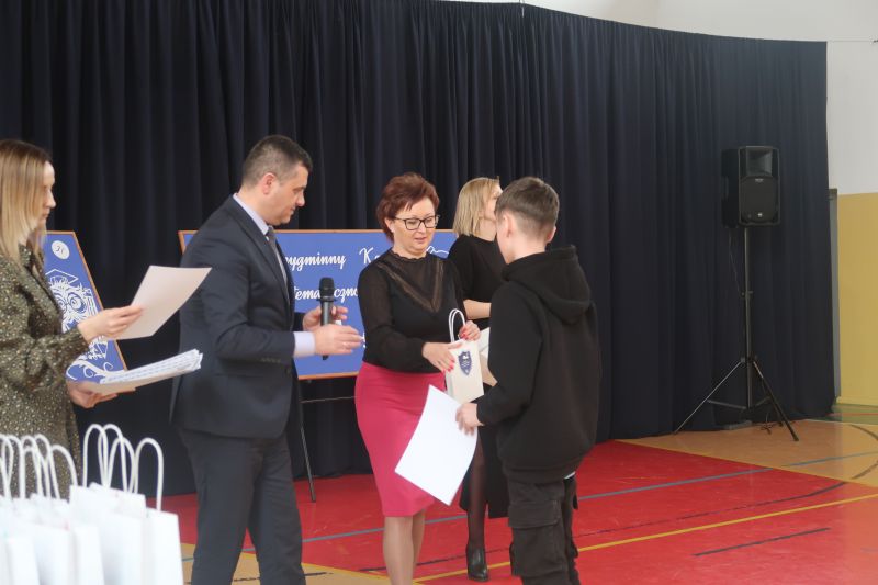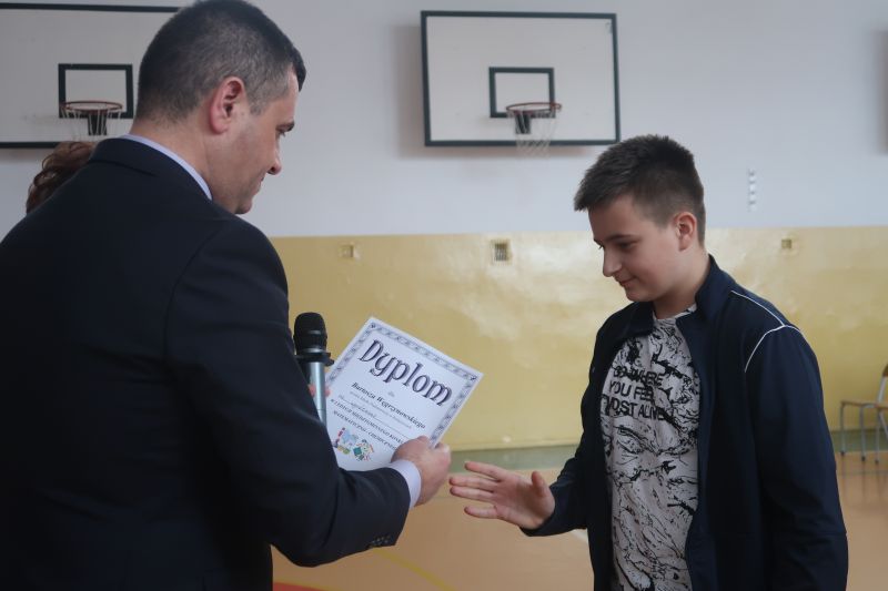 Wszyscy uczniowie otrzymali dyplomy uczestnictwa w konkursie oraz nagrody rzeczowe, które zostały wręczone przez Dyrektor PSP w Kołaczycach – pana Adama Iwanickiego oraz Kierownika Referatu Oświaty i Spraw Społecznych – panią Aldonę Krajewską.