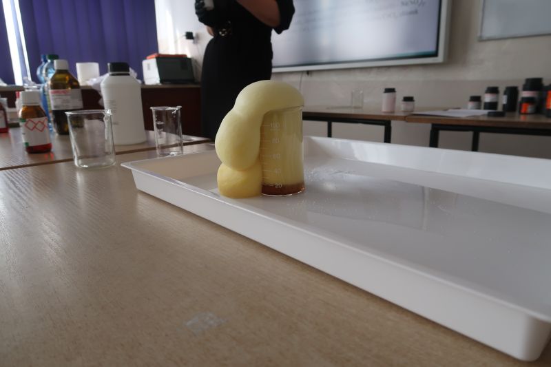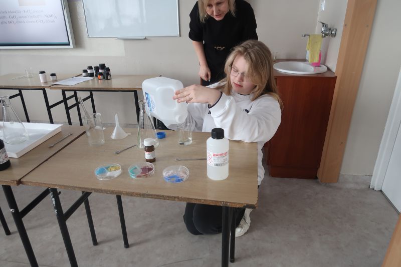 Oczekując na rozstrzygnięcie konkursu, uczniowie wraz z opiekunami udali się na obiad, a następnie uczestniczyli w pokazach chemicznych przygotowanych przez nauczycielkę chemii p. Justynę Iwanicką.
