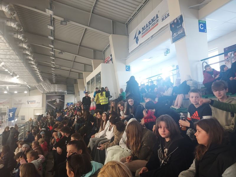 Uczniowie naszej szkoły w dniu 3.04.2024 r. (klasy Ia, Ib, IIa, IIIa, Va, VIa) oraz 5.04.2024 r. (klasy Vb, VIIa, VIIb ) uczestniczyli w wycieczce do Sanoka. Dzieci wraz z opiekunami: p. Wandą Nowak, p. Bogusławą Słowik, p. Anną Płazińską, p. Anną Madejczyk, p. Agnieszką Nowak, p. Beatą Opałką, p. Barbarą Kopacz, p. Agnieszką Wiejowską oraz p. Robertem Nowińskim, udali się na lodowisko, aby podziwiać widowisko teatralne na lodzie. Łyżwiarki i łyżwiarze z całej Polski zaprezentowali niezwykle barwne i profesjonalne przedstawienie wzbudzając wśród publiczności zachwyt i duży aplauz. Na lodowisku przy dźwiękach muzyki, iluminacjach świetlnych oraz licznych efektach specjalnych uczestnicy wycieczki podziwiali występy łyżwiarzy oraz łyżwiarek. Przedstawienie zostało oparte na „Niezwykłych przygodach Sindbada Żeglarza” według poezji Bolesława Leśmiana. Tytułowy bohater przemierzał odległe krainy w poszukiwaniu miłości i szczęścia. Na pierwszej z wysp spotkał króla, który zadał mu trzy pytania. Dzięki udzieleniu prawidłowej odpowiedzi otrzymał rękę księżniczki. Niestety dziewczyna przekręcała imiona i wybrała jego rywala. Następnie bohater trafił do miejsca, gdzie mieszkała księżniczka, która żywiła się diamentami. Ona również nie została jego żoną. Miłość swojego życia znalazł na ostatniej z wysp, gdzie spotkał uwięzioną przez czarnoksiężnika księżniczkę, a po uwolnieniu jej z niewoli, rozpoczął z nią szczęśliwe życie.