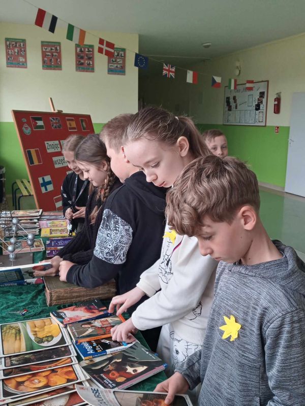 W miniony piątek 19 kwietnia obchodziliśmy Szkolny Dzień Języków. W tym roku połączony z dniem europejskim. Była wystawa książek, przewodników i słowników do poczytania. Były łamańce językowe i śmieszne słowa, a na schodach zwroty powitalne w różnych językach. Na najmłodszych uczniów czekały maty, puzzle, domina i magnesy. Klasy starsze sprawdziły podstawową wiedzę o krajach Europy, Unii Europejskiej ,ich językach i symbolach. Mistrzami wiedzy o Europie zostali uczniowie klasy 6a- Adrianna i Wiktor. Gratulujemy serdecznie i dziękujemy wszystkim za udział w akcji.