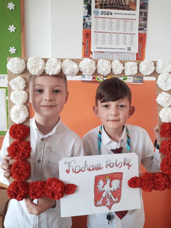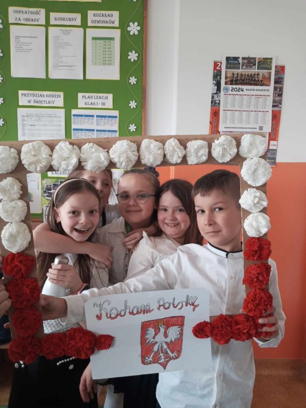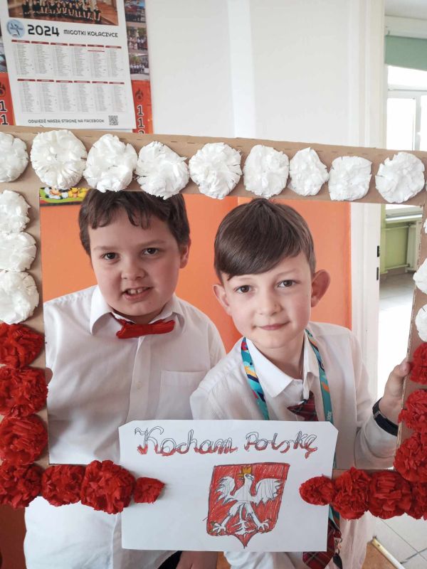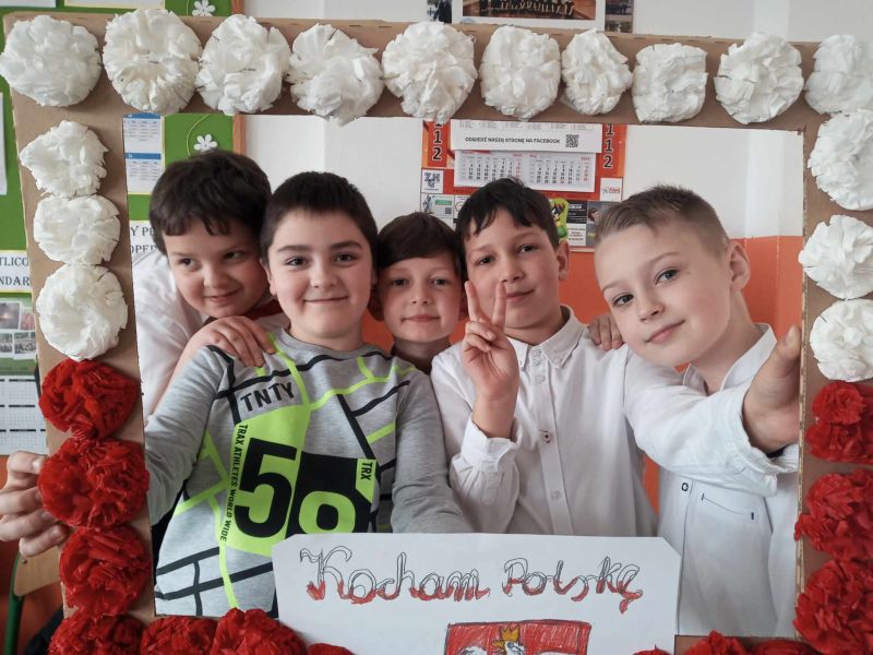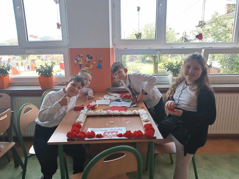 Podczas dzisiejszych rozmów o Polsce, świetliczaki stworzyły oryginalną fotobudkę w barwach narodowych. Niektórym udało się także skorzystać z popołudniowej poprawy pogody i ułożyć pierwsze wiosenne kompozycje.