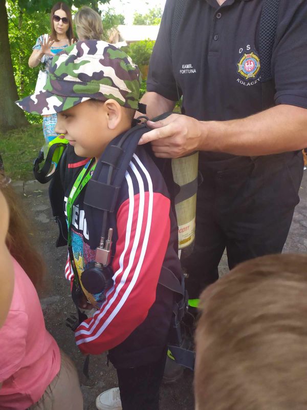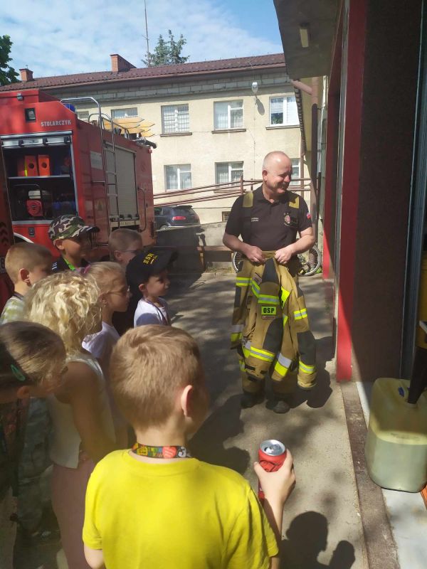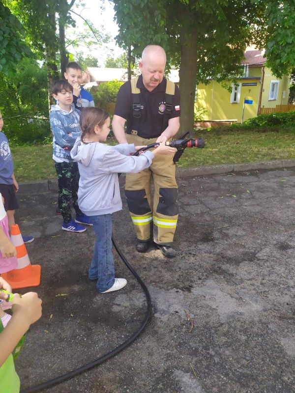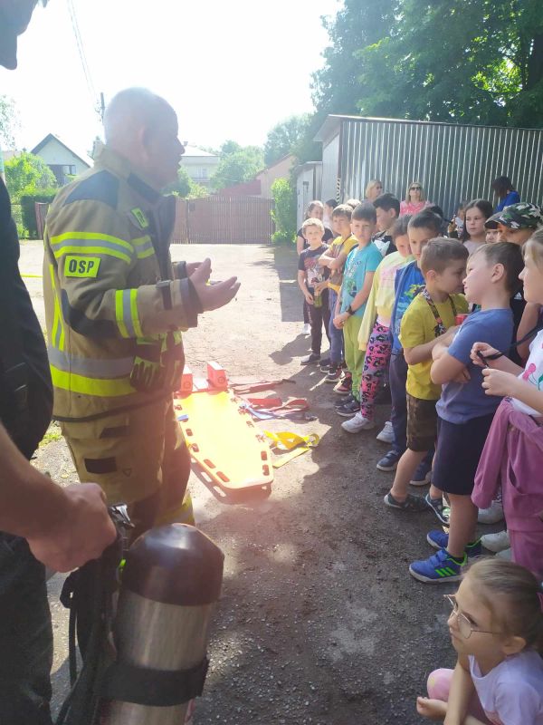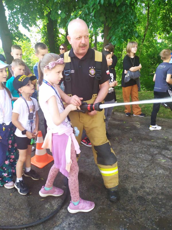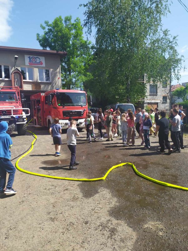 Dzięki uprzejmości Strażaków OSP w Kołaczycach w piątek 24.05.24 r. wszystkie klasy edukacji wczesnoszkolnej z wychowawczyniami wybrały się na wycieczkę do Remizy Strażackiej. W trakcie spotkania dzieci wzięły udział w pokazie sprzętu strażackiego. Wielką atrakcją okazał się wóz strażacki i sprzęt pożarniczy. Dzieci mogły poznać niezbędne wyposażenie i strój strażacki, dowiedzieć się w jakich okolicznościach należy wezwać straż pożarną. Miały również możliwość lania wody wężem strażackim. Przez chwilę wszyscy poczuli się prawdziwymi strażakami. Na zakończenie spotkania uczniowie otrzymali pyszne cukierki. Serdecznie dziękujemy Strażakom z jednostki Ochotniczej Straży Pożarnej w Kołaczycach za zorganizowanie spotkania oraz umożliwienie naszym podopiecznym poznanie zawodu strażaka.