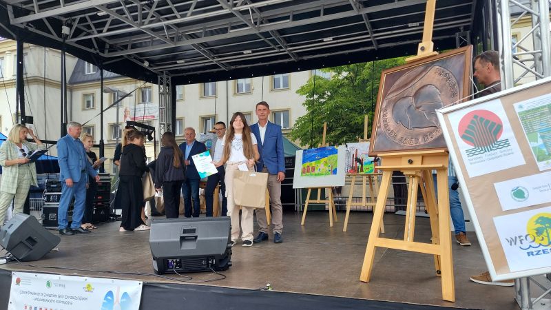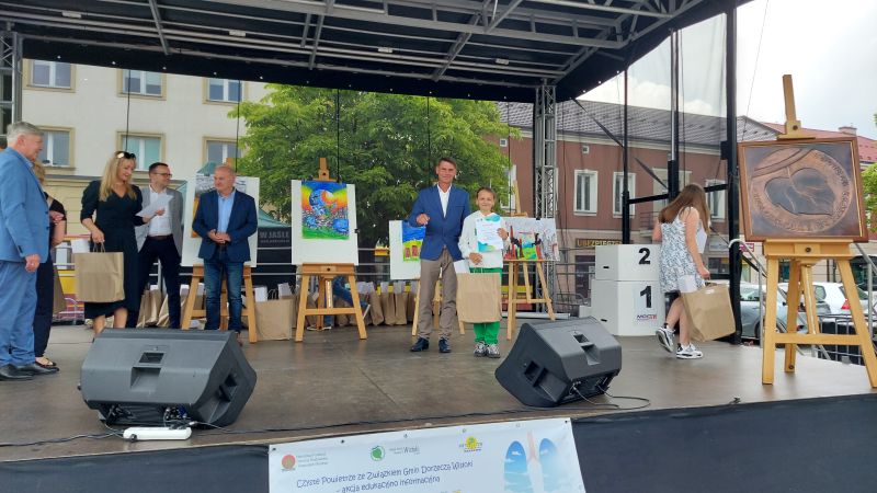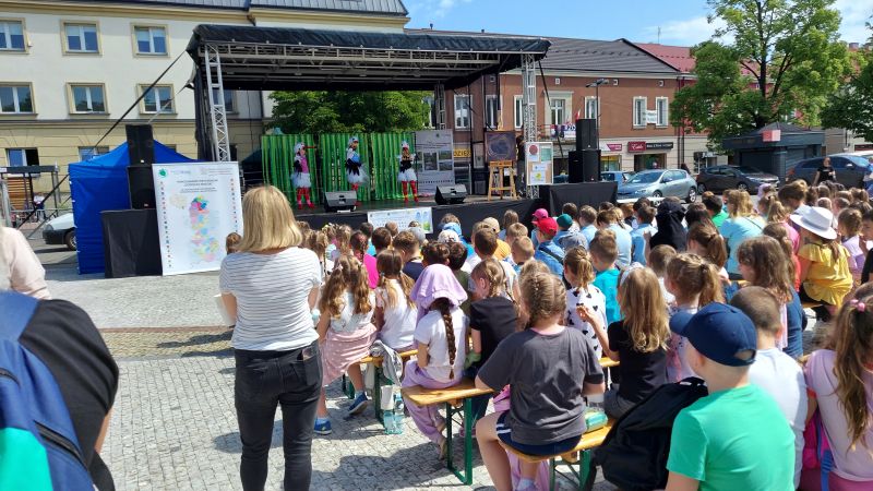 Na jasielskim Rynku odbyła się dzisiaj akcja edukacyjno – informacyjna „Czyste Powietrze ze Związkiem Gmin Dorzecza Wisłoki”. Jej celem jest ochrona środowiska i klimatu, przeciwdziałanie szkodliwym emisjom, wykorzystanie energii słonecznej, przy zastosowaniu kolektorów słonecznych, systemów fotowoltaicznych, energii geotermalnej, zmianę świadomości ekologicznej mieszkańców i pogłębienie wiedzy w zakresie energetyki odnawialnej w szczególności słonecznej jako ekologicznego i taniego źródła energii. Dla uczniów przygotowano konkursy i wiele atrakcji. Dzieci obejrzały spektakl „Ekonolulu” przygotowany przez Teatr Kultureska. Mogły wziąć udział w warsztatach plastycznych, warsztatach pierwszej pomocy przygotowanych przez Słowacki Czerwony Krzyż, mogły podziwiać eksperymenty naukowe przygotowane przez Generator Nauki w Jaśle, mobilne laboratorium POLoNEs i wiele innych. Naszą szkołę reprezentowały: Julia Podgórska i Kornelia Jaworska - uczennice kl. V a i Anita Wypasek z kl. VII a. Julia wykonała także pracę o tematyce ekologicznej w trakcie imprezy, na płycie Rynku. Za piękne prace przygotowane na konkurs ekologiczny promujący czyste powietrze dziewczęta otrzymały atrakcyjne nagrody.