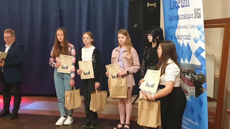 W dniu 4 czerwca 2024 r. odbyło się wręczenie nagród w powiatowym konkursie "Niech przemówią miejsca" zorganizowanym przez Stowarzyszenie Miłośników Kołaczyc oraz LO Kołaczyc pod patronatem Burmistrza Kołaczyc Pani Magdaleny Stasiowskiej.