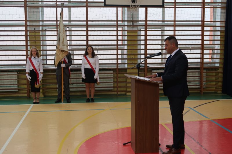 Uroczystość rozpoczęła się tradycyjnie od wprowadzenia sztandaru szkoły oraz odśpiewania hymnu narodowego. Następnie głos zabrał Pan Dyrektor Adam Iwanicki, który serdecznie powitał wszystkich zgromadzonych. W swoim przemówieniu, zwrócił się bezpośrednio do uczniów, życząc im wielu sukcesów w nauce oraz rozwijania swoich pasji i zainteresowań. Następnie uczniowie udali się do sal lekcyjnych na spotkanie z wychowawcami.