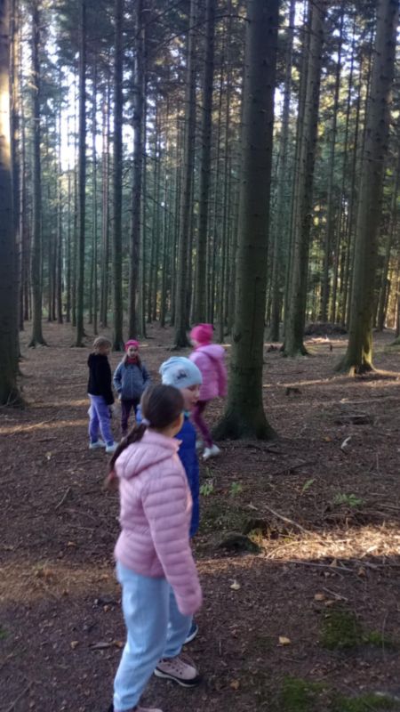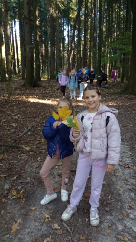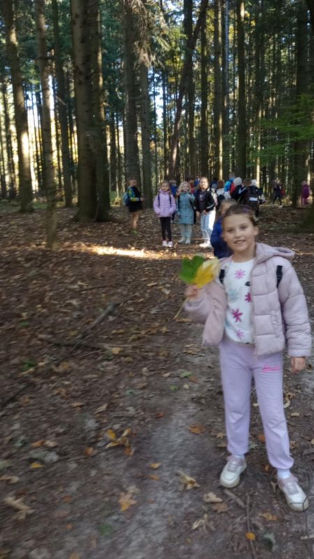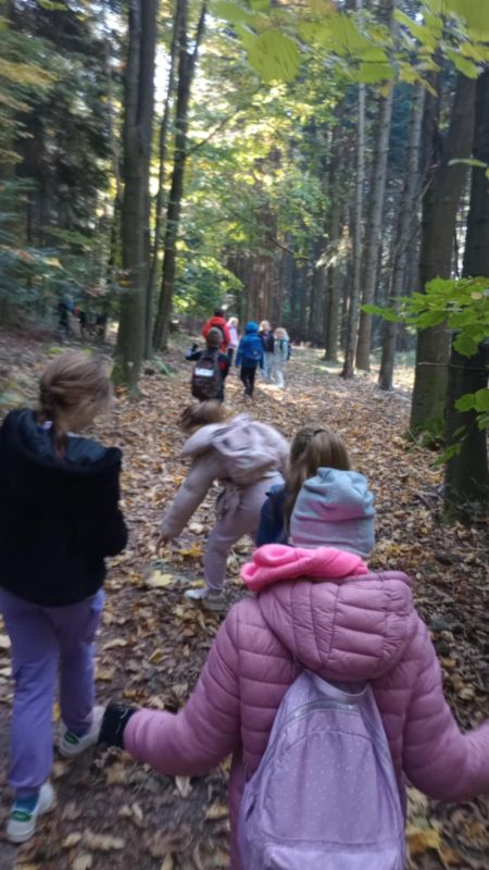 Korzystając z pięknej i słonecznej pogody 21.10.2024 roku uczniowie klas drugich wybrali się na jesienną wycieczkę do lasu. Celem wycieczki było poznanie zwierząt i roślin spotkanych w lesie oraz zapoznanie się z pojęciami – warstwy lasu i rodzaje lasów. Uczniowie obserwowali las, który kryje w sobie wiele ciekawych tajemnic. Wycieczka do lasu wzbogaciła wiedzę uczniów oraz miała walory zdrowotne. Dzieci spędziły miło czas na świeżym , zdrowym powietrzu w otoczeniu pięknej, kolorowej przyrody. Pełni wiedzy o lesie i niezapomnianych wrażeń wróciliśmy do szkoły.
