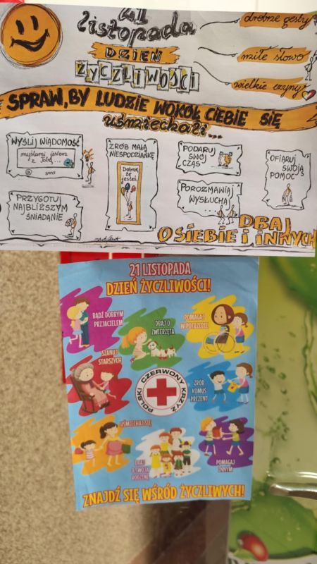 W tym dniu na drzwiach sal lekcyjnych zagościły w naszej szkole „miłe słowa”, które należało przekazać dalej. Dodatkowo uczniowie klas I- III otrzymali odznaki z okazji tego święta. Akcja zorganizowana przez SK PCK cieszyła się dużym zainteresowaniem uczniów i upłynęła w atmosferze uśmiechu oraz dobrej zabawy. Pamiętajmy, aby życzliwość w naszym życiu była obecna codziennie, a nie tylko od święta.