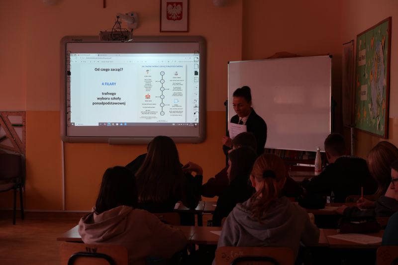 W dniu 29 listopada uczniowie klasy siódmej i ósmych wzięli udział w warsztatach z doradcą zawodowym z PUP w Jaśle. Podczas spotkania dowiedzieli się, że dokonując wyboru szkoły powinni brać pod uwagę zarówno swoje zainteresowania i predyspozycje, jak również możliwości dalszej edukacji oraz podjęcie satysfakcjonującej pracy zawodowej. Swoje predyspozycje poznali wypełniając psychotest: „Jaka szkoła do Ciebie pasuje?” i ankietę: „Co lubię, czego nie lubię”. Na koniec otrzymali broszury zawierające informacje o kierunkach kształcenia uczniów w technikach i szkołach branżowych znajdujących się na terenie Powiatu Jasielskiego. To spotkanie na pewno ułatwi uczniom dokonanie właściwego wyboru dalszej ścieżki kształcenia.