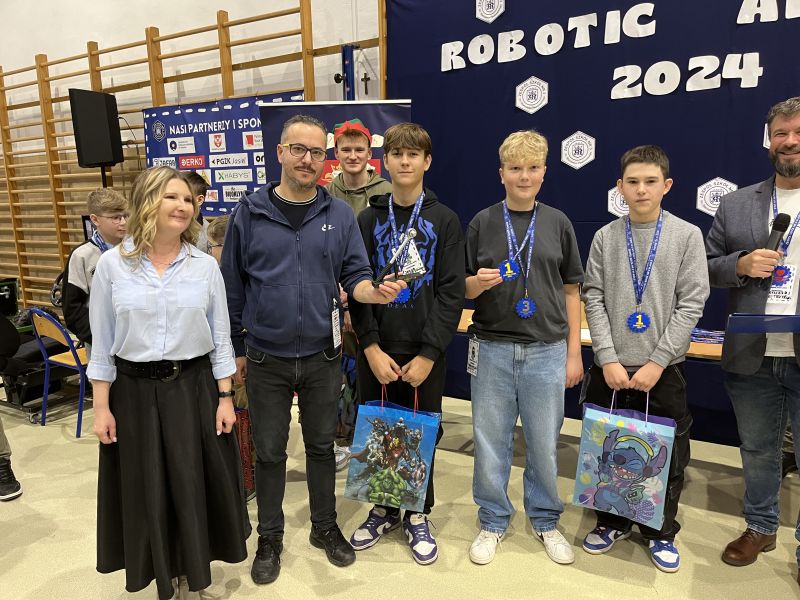 Z ogromną radością informujemy, że nasi uczniowie : Maciej Czech i Jakub Maciejowski z klasy VIII a oraz Maksymilian Wiączyk z klasy VII a osiągnęli wysokie miejsca w I Zawodach Robotycznych CHEMIK AREA w Zespole Szkół nr 3 w Jaśle. W zawodach uczestniczyły drużyny szkół podstawowych z powiatu jasielskiego i odbyły się pod honorowym patronatem Starosty Jasielskiego Pana Adama Pawlusia. Patronat nad zawodami objęły również uczelnie: Uniwersytet Mikołaja Kopernika w Toruniu Wydział Fizyki, Astronomii i Informatyki Stosowanej oraz Państwowa Akademia Nauk Stosowanych w Krośnie. Celem konkursu było przygotowanie robotów do trzech kategorii. Nasi uczniowie ambitnie przygotowali się do wszystkich konkurencji. W kategorii FREESTYLE zdobyli I miejsce, a w kategorii LEGO SUMO osiągnęli III lokatę. Uczniowie przygotowywali się pod opieką Pana Marcina Krupy.