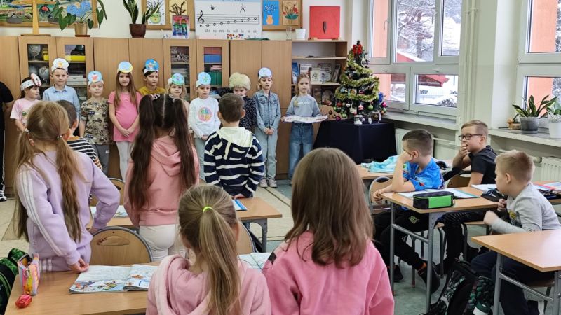 15 stycznia – uczniowie klasy II a wystąpili przed koleżankami i kolegami z edukacji wczesnoszkolnej. Mali aktorzy przygotowali inscenizację do wiersza J. Kierstapt: „Dwunastu braci .” Sami przygotowali piękne i bardzo pomysłowe stroje. Koledzy nagrodzili ich gromkimi brawami.