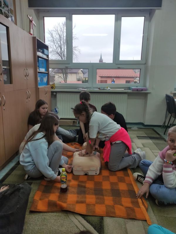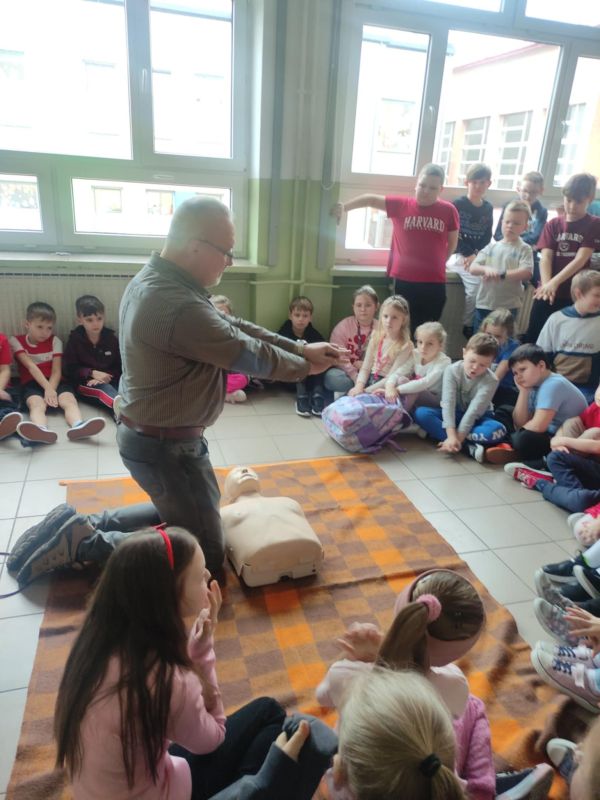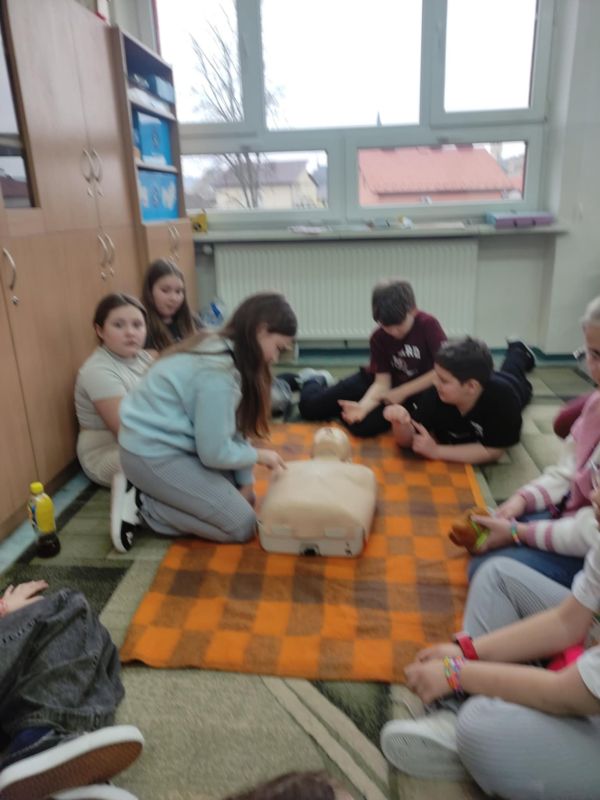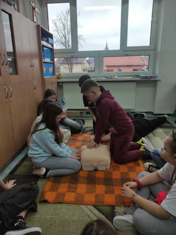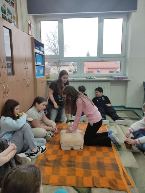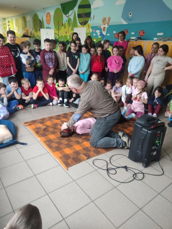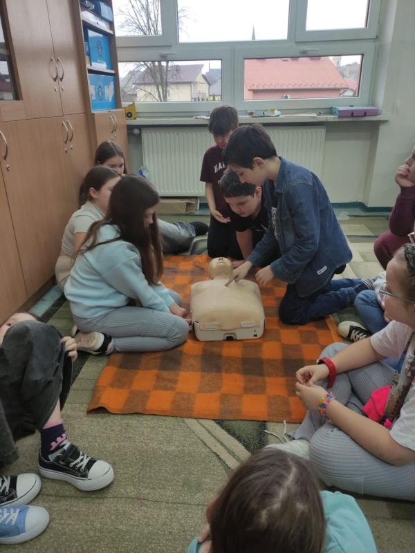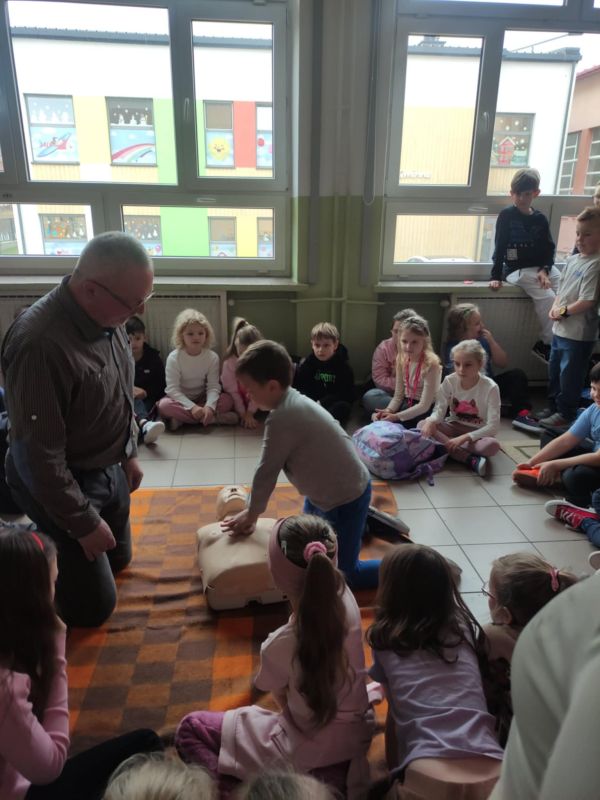 W przededniu ferii zimowych, 14 lutego 2025 roku, odbyły się warsztaty z zakresu udzielania pierwszej pomocy medycznej zorganizowane dla uczniów klas I-III przez opiekunów SK PCK oraz wychowawców edukacji wczesnoszkolnej. Zajęcia przeprowadził p. Jerzy Woźniak– nauczyciel edukacji dla bezpieczeństwa, który na wstępie przypomniał podstawowe zasady bezpiecznego wypoczynku w czasie ferii zimowych. W czasie warsztatów uczniowie zdobyli informacje dotyczące powiadamiania służb medycznych o wypadkach, udzielania pierwszej pomocy przedmedycznej, prawidłowego ułożenia poszkodowanego w pozycji bezpiecznej ustalonej oraz wykonywali ćwiczenia w zakresie prawidłowego wykonywania resuscytacji na fantomie. Dzieci z dużym zaangażowaniem uczestniczyły w zajęciach, w czasie których dowiedziały się o konieczności niesienia pomocy poszkodowanym oraz nauczyły się odpowiedniego zachowania w obliczu wypadku. Wszystkim uczniom życzymy bezpiecznego i udanego wypoczynku w czasie ferii.