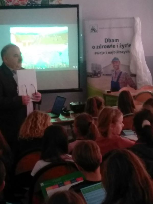 W dniu 11 marca 2025 r. w naszej szkole odbyło się spotkanie klas I – III z przedstawicielami KRUS pod hasłem "Dbam o zdrowie i życie swoje i najbliższych." Celem tego spotkania było uświadomienie i przypomnienie uczniom zasad bezpieczeństwa na wsi oraz udzielania pierwszej pomocy. Uczniowie dowiedzieli się od pracowników KRUS, jakich zasad powinno się przestrzegać podczas pracy z urządzeniami i maszynami rolniczymi w gospodarstwie rolnym.