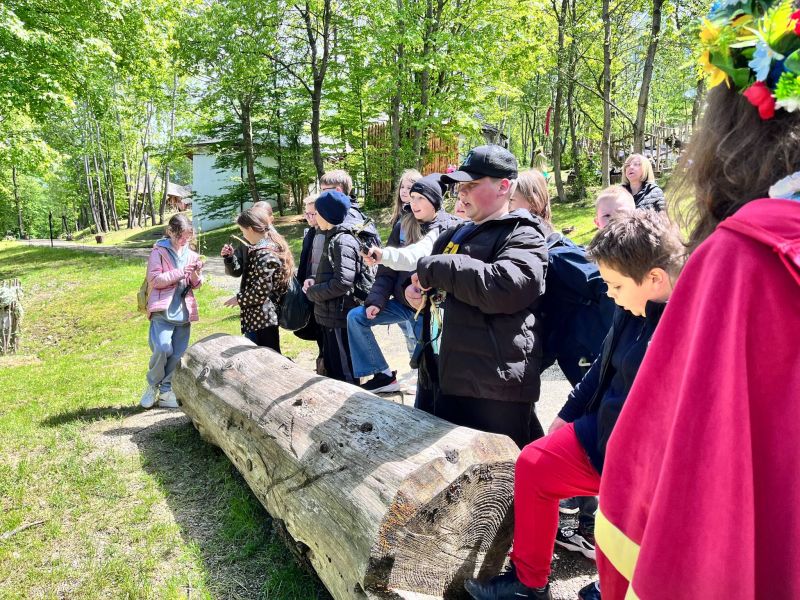 16 maja 2025 roku uczniowie klasy 2, 4, 5a, 5b oraz 6a wybrali się na wycieczkę do Soliny. Po przybyciu na miejsce, swoją przygodę rozpoczęli od wizyty w sali multimedialnej, gdzie poznali ciekawostki związane z koleją, topografią terenu oraz bieszczadzką przyrodą. Następnym punktem programu była podróż kolejką gondolową, podczas której uczniowie podziwiali niezwykły krajobraz zielonych Bieszczad, Jeziora Solińskiego oraz zapory . Po dotarciu na górę Jawor na uczestników wycieczki czekała wieża widokowa z niesamowitym krajobrazem. Następnym punktem był Park Rozrywki „Tajemnicza Solina”. Tutaj legendarne Biesy, Czady i Olbrzymy zabrały dzieci w świat zabaw i pozwoliły poznać od lat skrywane historie i legendy Bieszczad. Uczniowie szukali złota, poznali labirynt Biesa, weszli do tajemniczej studni, wspinali się ścieżkami w koronach drzew oraz zjeżdżali czadowymi ślizgami. Przewodniczkami po tej niezwykłej krainie były Rusałki oraz Czad.