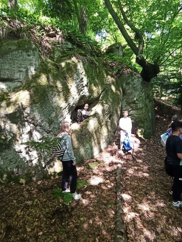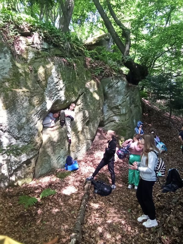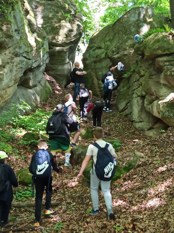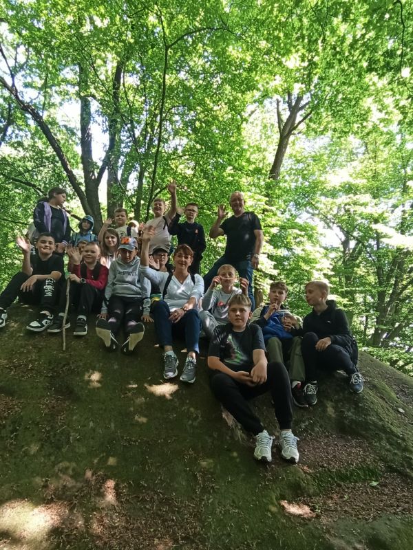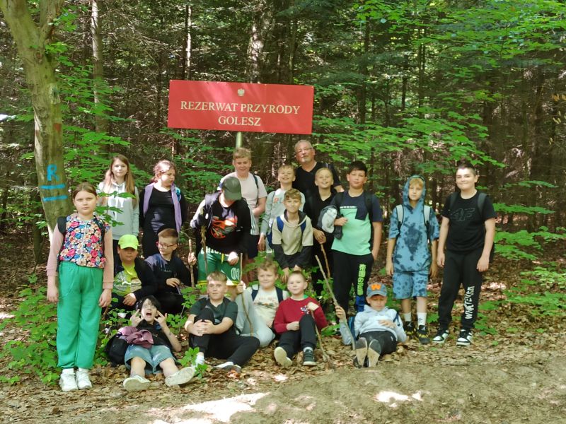 Celem pieszego rajdu było poznanie walorów przyrodniczych i krajobrazowych Rezerwatu Golesz, integracja nowych członków koła, a także propagowanie aktywnego wypoczynku i turystyki pieszej. Uczestnicy zebrali się 28.06 2025r. o godzinie 9:00 przed budynkiem szkoły. Po krótkiej odprawie i przypomnieniu zasad bezpieczeństwa, członkowie koła wyruszyli w kierunku Rezerwatu Golesz, położonego w naszej gminie, w miejscowości Krajowice. Trasa piesza liczyła około 6 kilometrów i prowadziła przez malownicze tereny. Po dotarciu na miejsce około godziny 11:00 uczniowie rozpoczęli zwiedzanie. Rezerwat Golesz zachwycił swoim naturalnym pięknem – strome, zalesione wzgórza, liczne skałki i ciekawe formy krasowe zrobiły duże wrażenie. Opiekunowie grupy opowiedzieli o unikatowej roślinności oraz o walorach geologicznych tego terenu. Uczestnicy rajdu mieli także okazję zobaczyć ruiny średniowiecznego grodziska, co stanowiło dodatkową atrakcję historyczną. Droga powrotna upłynęła w przyjaznej atmosferze. Wycieczka była udana zarówno pod względem organizacyjnym, jak i edukacyjnym. Uczestnicy zdobyli nowe wiadomości o przyrodzie i historii regionu, a także mieli okazję lepiej się poznać i zintegrować. Dla wielu nowo przyjętych członków była to pierwsza okazja do udziału w wyprawie organizowanej przez szkolne koło PTTK. Z pewnością pozostanie ona w ich pamięci na długo.