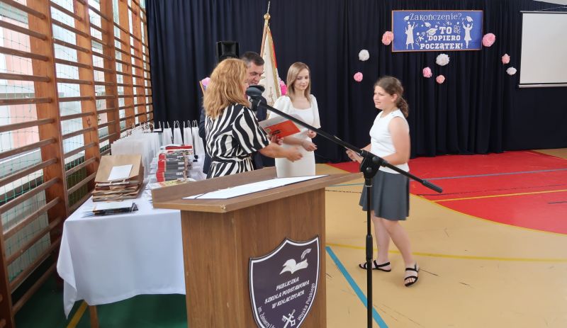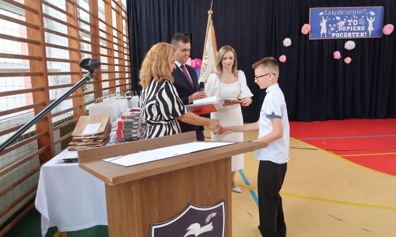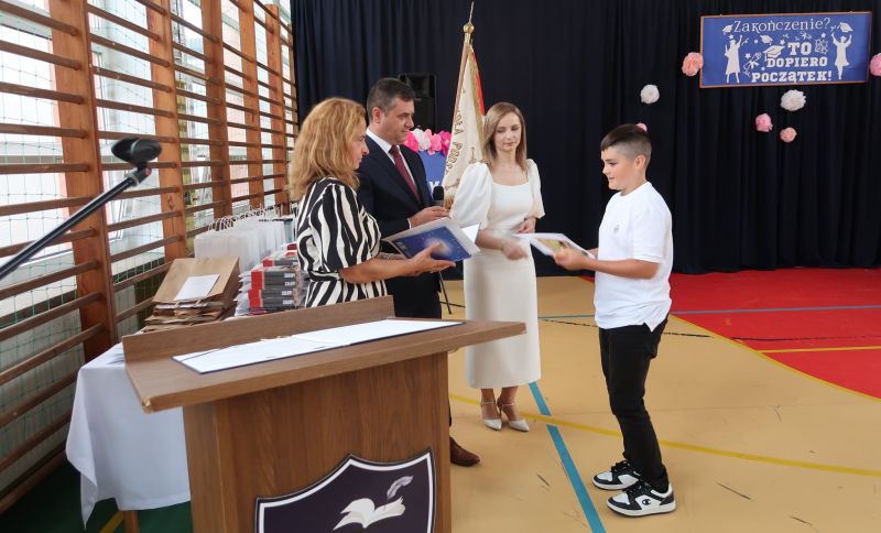 W piątek, 27 czerwca 2025 roku, w naszej szkole odbyła się uroczysta akademia z okazji zakończenia roku szkolnego 2024/2025. Wydarzenie zgromadziło uczniów, rodziców i nauczycieli. Akademię rozpoczęto od oficjalnego powitania gości oraz odśpiewania hymnu państwowego. Następnie głos zabrał Pan Dyrektor Adam Iwanicki, który podsumował mijający rok, dziękując uczniom i nauczycielom za ich pracę, a rodzicom za wsparcie i zaangażowanie. Ze sceny popłynęły również słowa uznania dla ósmoklasistów, którzy zakończyli swoją naukę w naszej szkole. Najlepsi uczniowie klas ósmych otrzymali nagrody za osiągnięcia w nauce. Dziękujemy wszystkim za obecność oraz wspólne świętowanie. Życzymy udanych, bezpiecznych i słonecznych wakacji! Do zobaczenia we wrześniu!