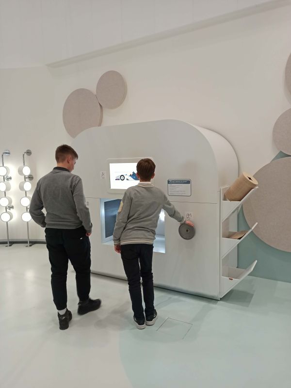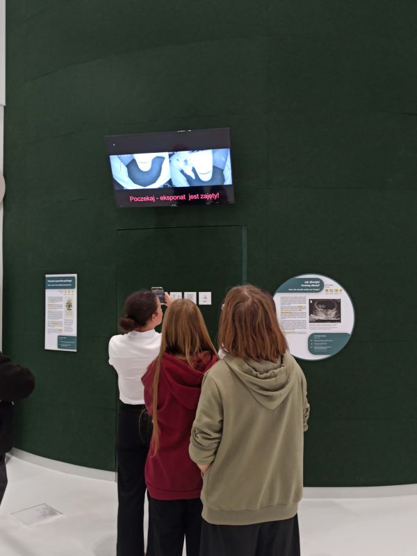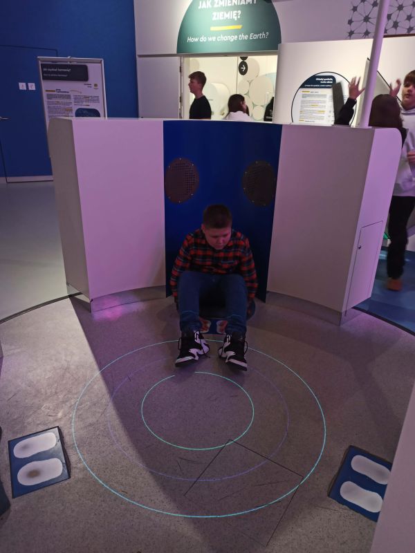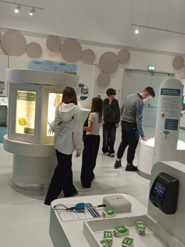 Kolejnym punktem wycieczki był obiad w restauracji „Na Polu”, po którym uczniowie udali się do Małopolskiego Centrum Nauki Cogiteon. Zwiedzili tam wystawę stałą „Człowiek i jego marzenia”- podzieloną na pięć tematycznych stref. W pierwszej części poznawali funkcjonowanie ludzkiego organizmu, procesy starzenia się oraz sposoby radzenia sobie z zagrożeniami. Druga część poświęcona była rozwojowi cywilizacji i funkcjonowaniu człowieka w społeczeństwie. W trzeciej strefie uczniowie przenieśli się do początków wszechświata i życia na Ziemi, poznając zagadnienia związane z ewolucją i budową kosmosu. Czwarta sala dotyczyła wpływu działalności człowieka na środowisko naturalne oraz wynalazków, natomiast piąta skupiała się na ludzkiej pomysłowości i wyobraźni. Interaktywne ekspozycje bardzo spodobały się uczniom – poprzez zabawę i eksperymentowanie mogli lepiej zrozumieć, jak funkcjonuje otaczający ich świat.