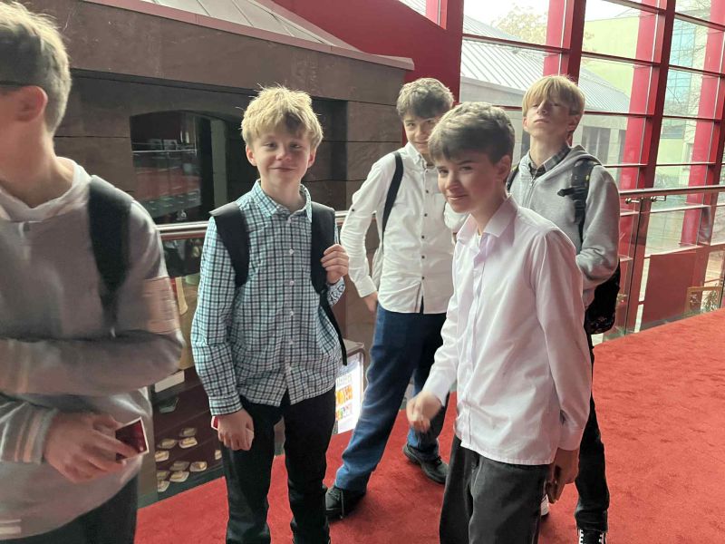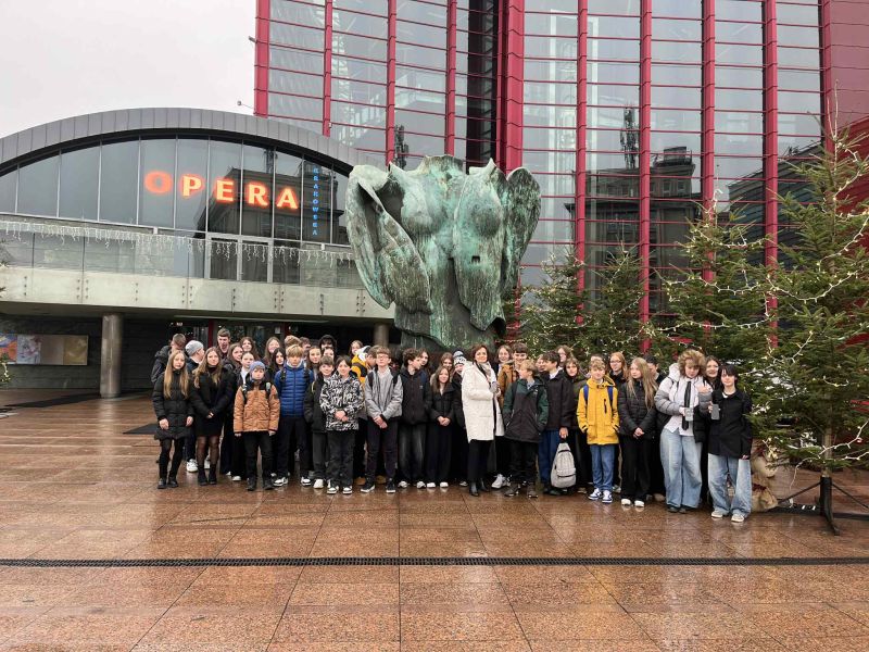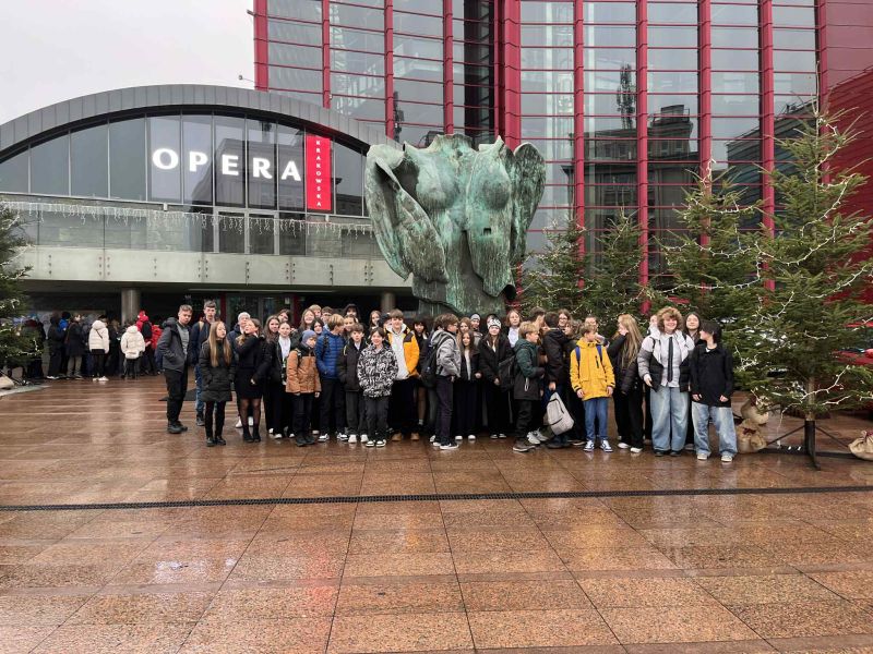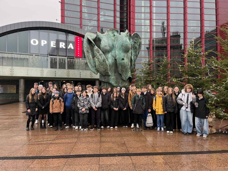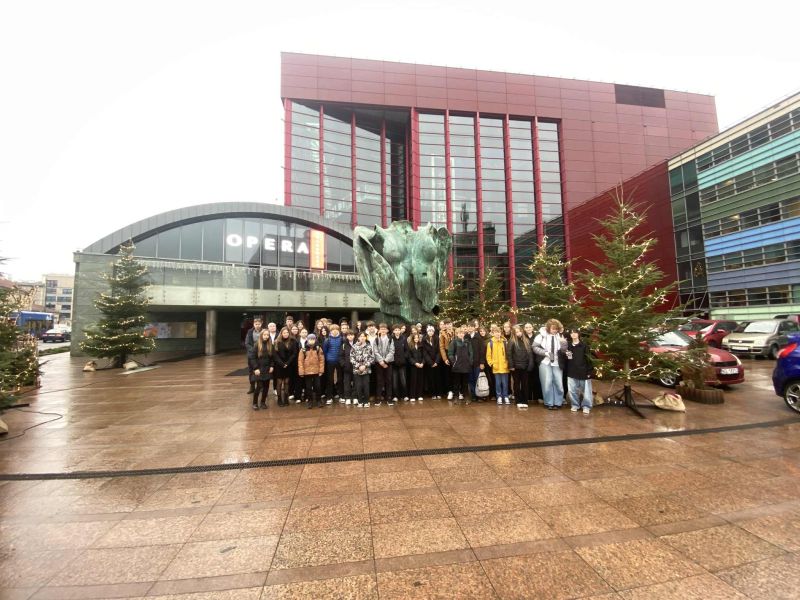 Dnia 11 grudnia 2025 r. uczniowie klas VI–VIII, w ramach ministerialnego programu „Wyjście z klasą”, udali się do Opery Krakowskiej na spektakl teatralno-muzyczny pt. „Nowa opowieść wigilijna”. Tytuł oraz treść przedstawienia nawiązują do znanej powieści Karola Dickensa. Podobnie jak literacki pierwowzór, spektakl stawia pytanie: co jest ważniejsze – mieć czy być? Odpowiedzi poszukiwano we współczesnej rzeczywistości korporacyjnej. Prezes firmy, Eben Sknerski, w wigilijny wieczór nie rozumie ani swoich pracowników, pragnących spędzić święta z rodzinami, ani bratanka z żoną, którzy zapraszają go na wigilijną kolację, ani osób kwestujących na rzecz samotnych matek i ich dzieci. Gdy zostaje sam, nawiedza go duch zmarłego wspólnika, który ukazuje mu przerażającą wizję przyszłości w zaświatach, jeśli nie zmieni swojego postępowania. Zapowiada także pojawienie się Demonów: Księżnej Polityki, Markiza Mamony, Baronessy Palestry i Atamana Blagi, którzy namawiają bohatera do trwania w dotychczasowych przyzwyczajeniach. Ostatecznie Eben Sknerski zrywa z przeszłością – przekazuje korporację młodemu krewniakowi, oddając ją pod opiekę doświadczonego i uczciwego pracownika Roberta Kulawika, którego wcześniej mobbingował. Obiecuje również sfinansować leczenie jego chorego synka. Niezwykła muzyka, efekty specjalne oraz znakomita gra aktorska przykuły uwagę uczniów i wywarły na nich duże wrażenie.