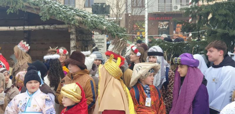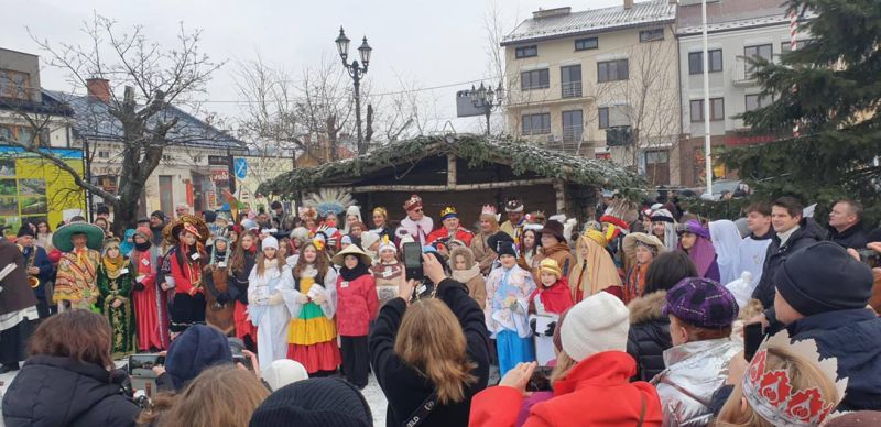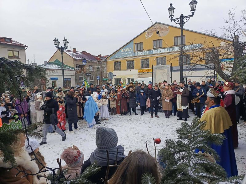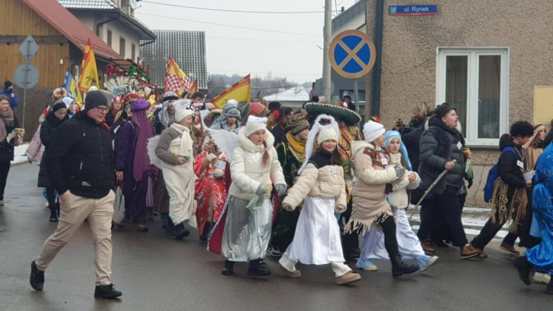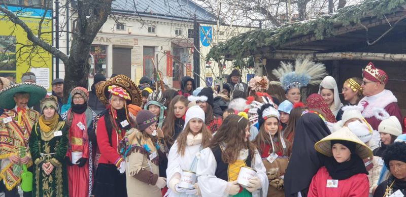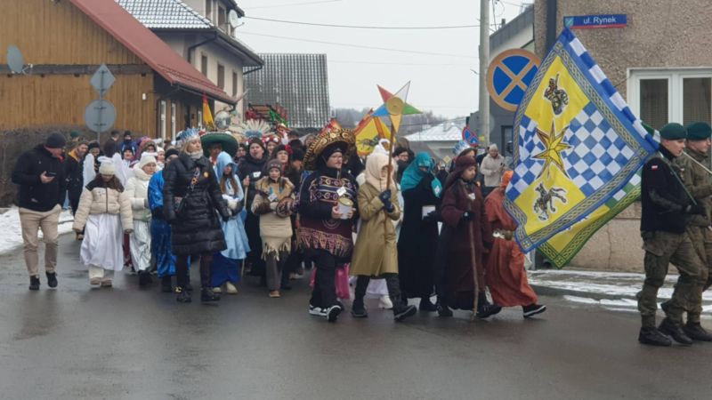Wzorem ubiegłego roku, po Mszy, kolędnicy przemaszerowali w 2. ORSZAKU TRZECH KRÓLI ulicami Kołaczyc do Szopki, która znajduje się na RYNKU. Tu nastąpiło rozesłanie 16 grup barwnie wystrojonych „pomocników misjonarzy”. Ruszyli we wcześniej wyznaczone tereny, aby w odwiedzanych domach zachęcać do pomocy MISJOM, ze szczególnym uwzględnieniem dzieci na SRI LANCE, które ucierpiały przez wieloletnie wojny i niejedno tsunami.