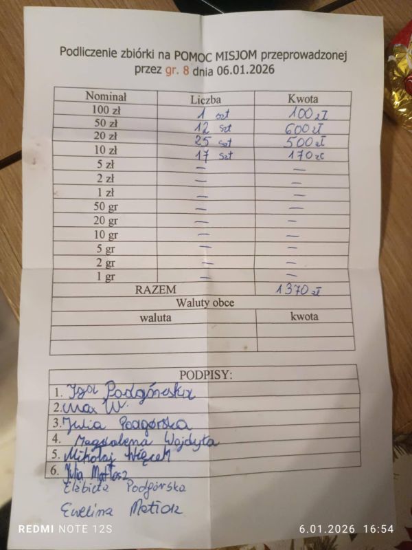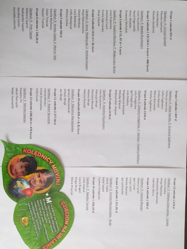 Ofiarność parafian oraz poświęcenie kolędników zaowocowały zebraną kwotą 21 485, 22 zł + 45 euro + 950 forintów.