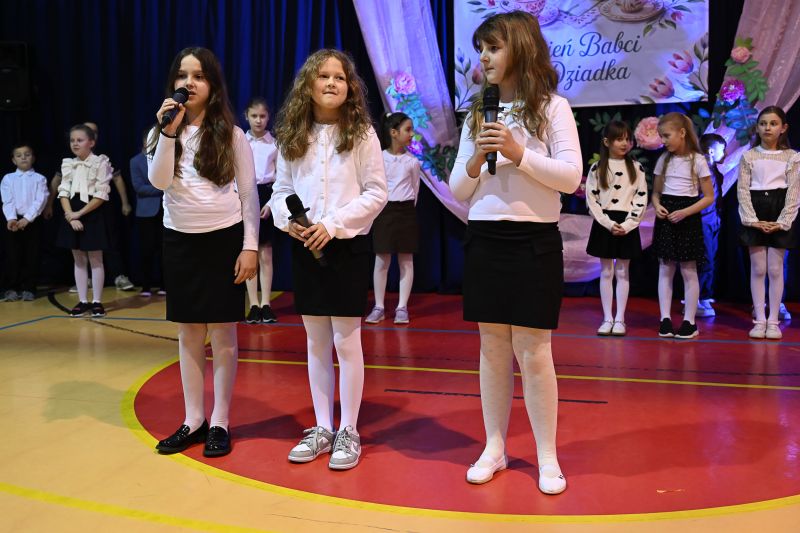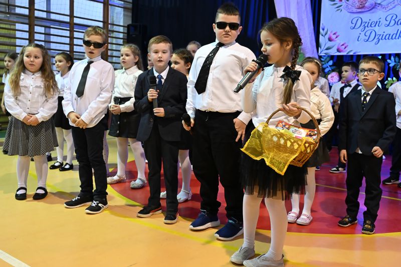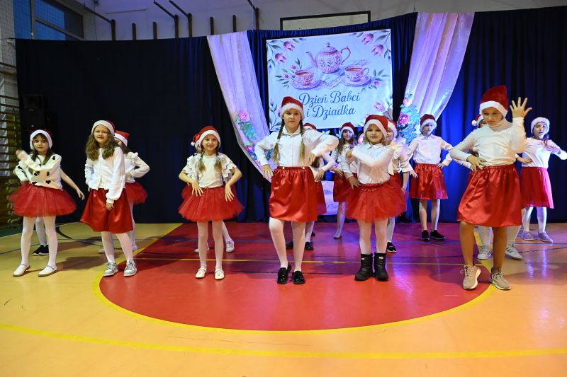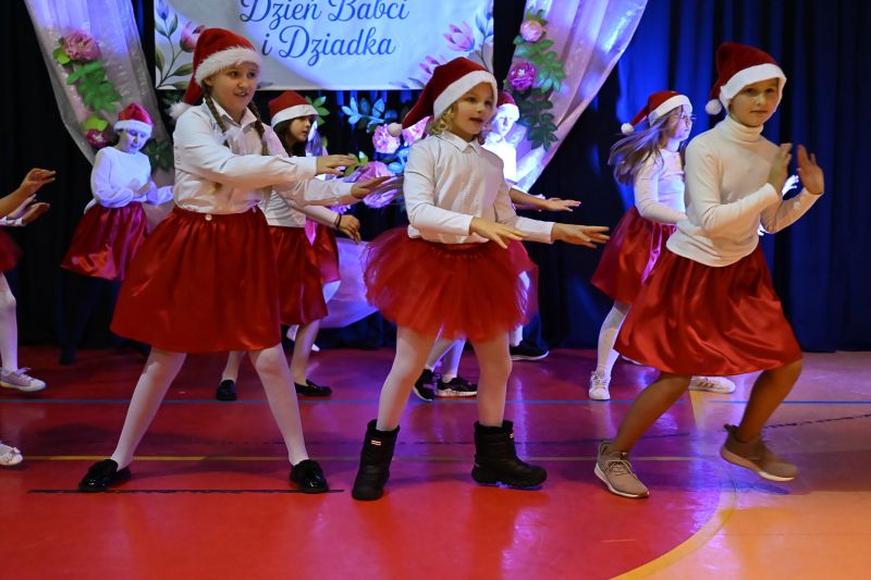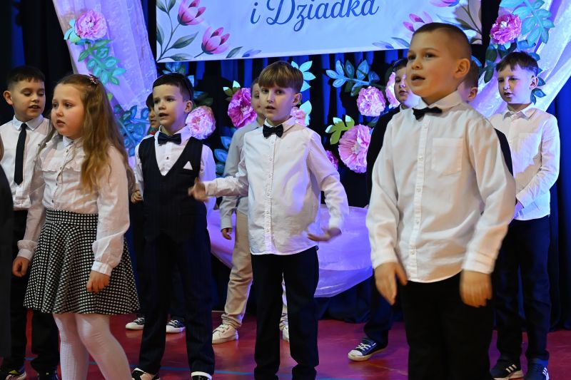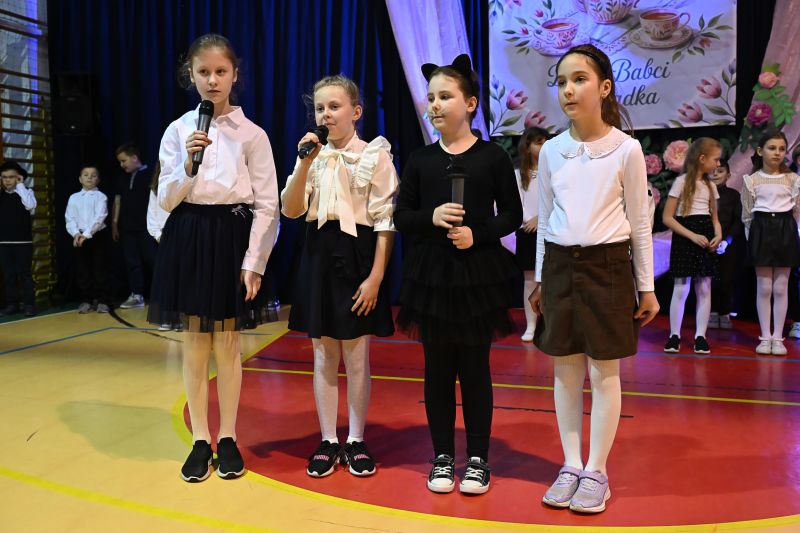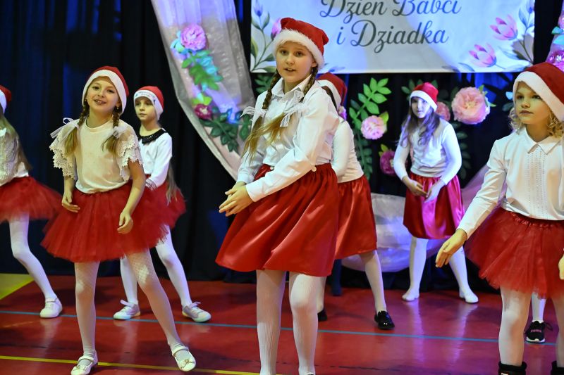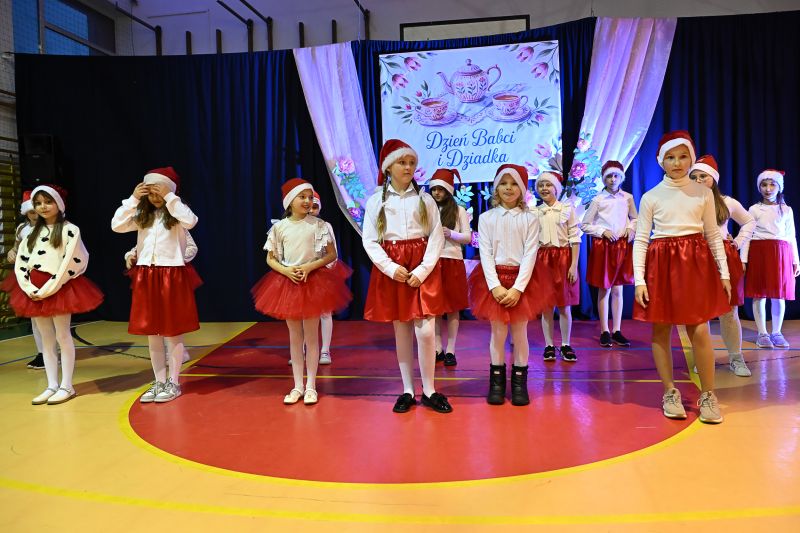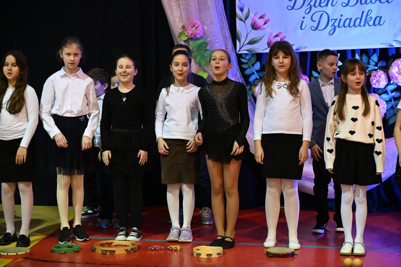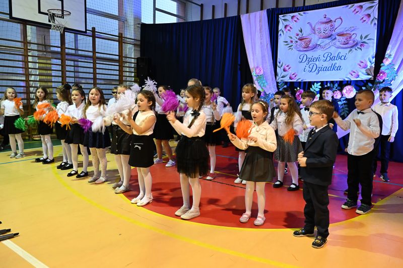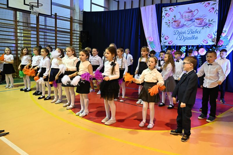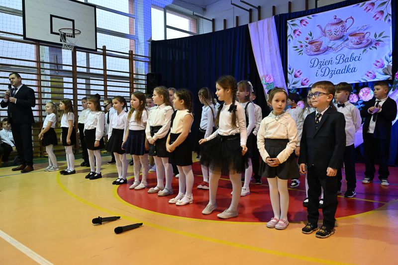Uroczystość rozpoczął Pan Dyrektor Adam Iwanicki, który serdecznie przywitał przybyłych gości oraz przekazał moc serdecznych życzeń wszystkim Babciom i Dziadkom. Uczniowie klas pierwszych i trzecich pod kierunkiem swoich wychowawczyń przygotowali piękną uroczystość. Oprócz montażu słowno- muzycznego, goście obejrzeli także pokazy taneczne w wykonaniu swoich wnuków oraz inscenizację pt. „Rosołek”. W trakcie uroczystości Babcie i Dziadkowie mogli podziwiać swoje wnuczęta w różnych formach artystycznych. Mali artyści z przejęciem odtwarzali swoje role, a czcigodni goście ze wzruszeniem odbierali czułe słowa, kierowane pod ich adresem. Atmosfera była wspaniała, podziękowaniom nie było końca. Dzieci poczuły się prawdziwymi gospodarzami szkoły.