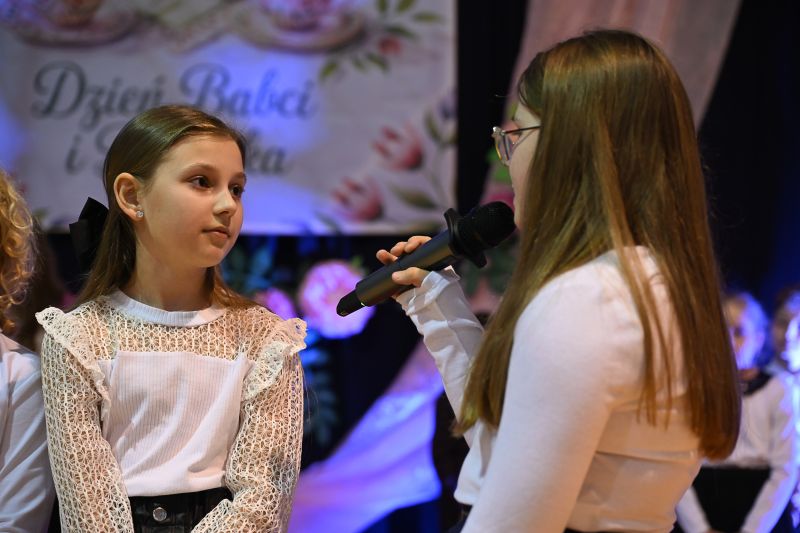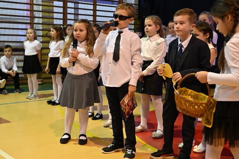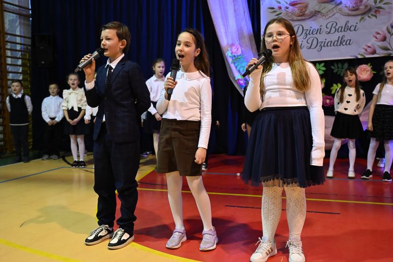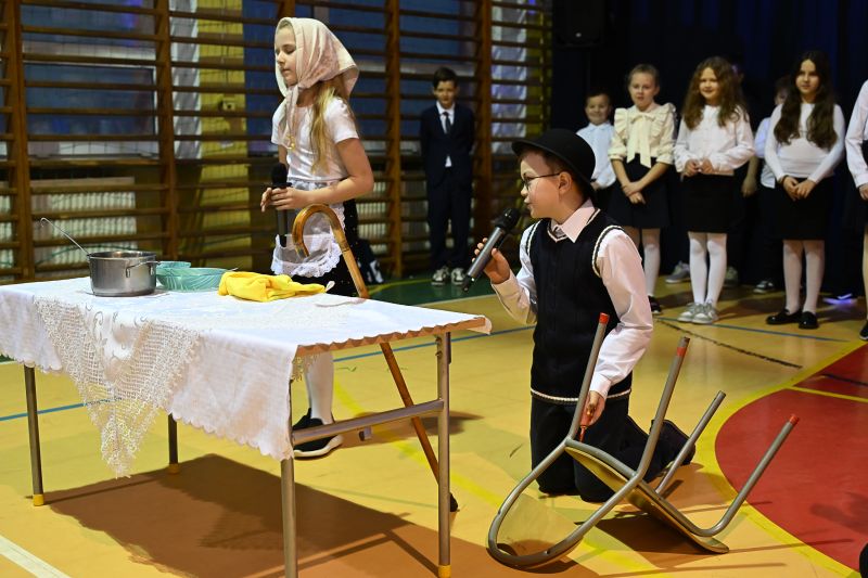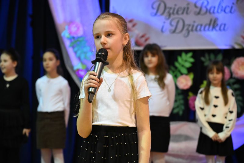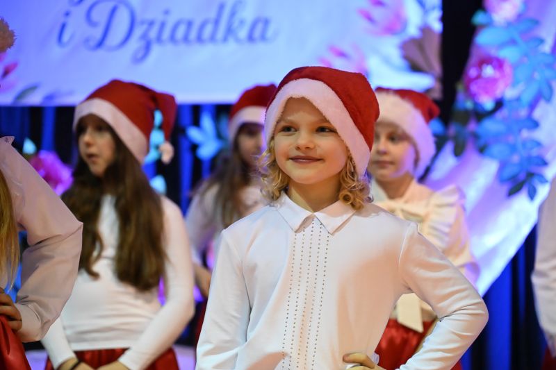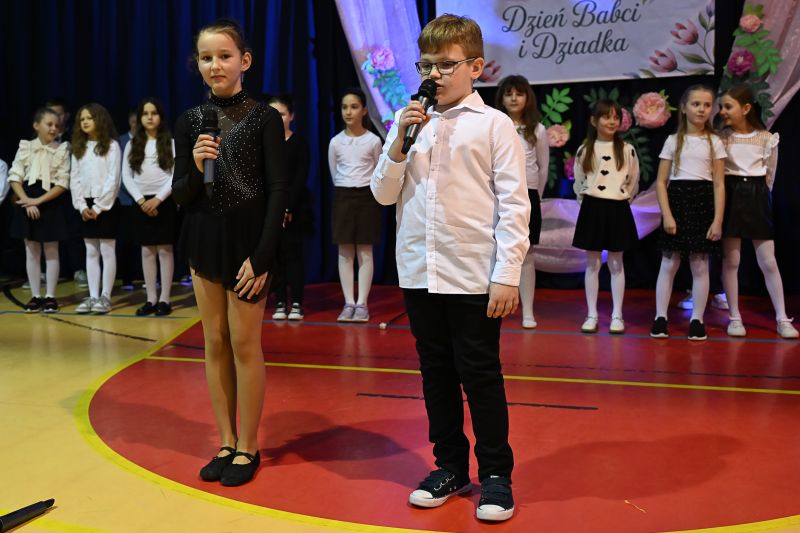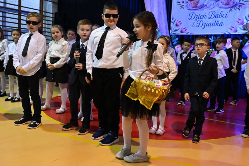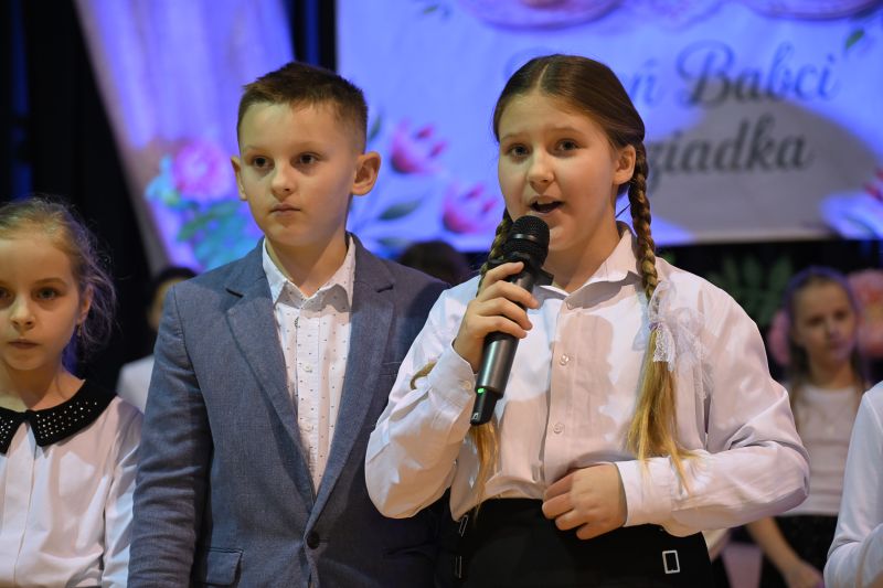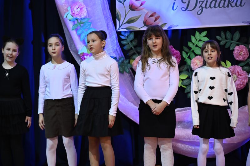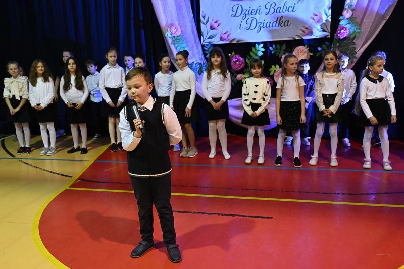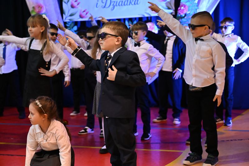 Uroczystość rozpoczął Pan Dyrektor Adam Iwanicki, który serdecznie przywitał przybyłych gości oraz przekazał moc serdecznych życzeń wszystkim Babciom i Dziadkom. Uczniowie klas pierwszych i trzecich pod kierunkiem swoich wychowawczyń przygotowali piękną uroczystość. Oprócz montażu słowno- muzycznego, goście obejrzeli także pokazy taneczne w wykonaniu swoich wnuków oraz inscenizację pt. „Rosołek”. W trakcie uroczystości Babcie i Dziadkowie mogli podziwiać swoje wnuczęta w różnych formach artystycznych. Mali artyści z przejęciem odtwarzali swoje role, a czcigodni goście ze wzruszeniem odbierali czułe słowa, kierowane pod ich adresem. Atmosfera była wspaniała, podziękowaniom nie było końca. Dzieci poczuły się prawdziwymi gospodarzami szkoły.