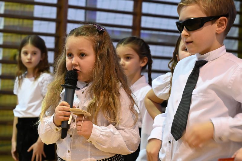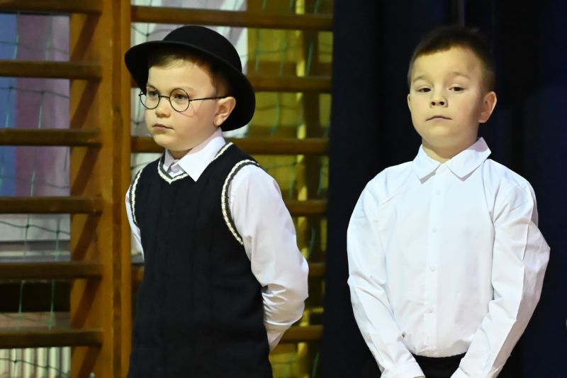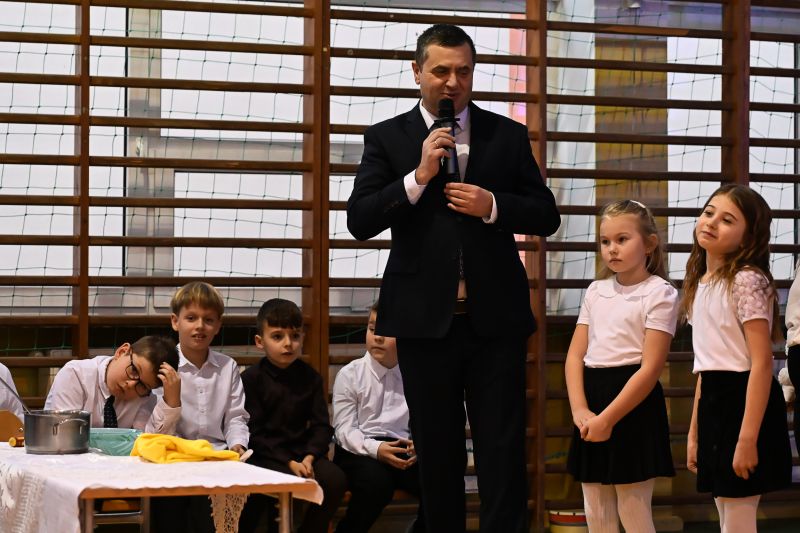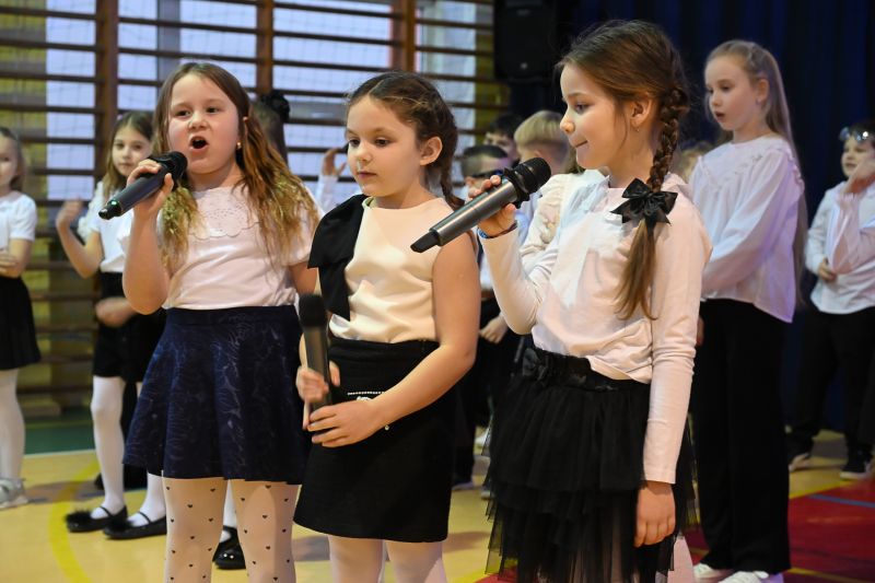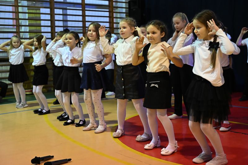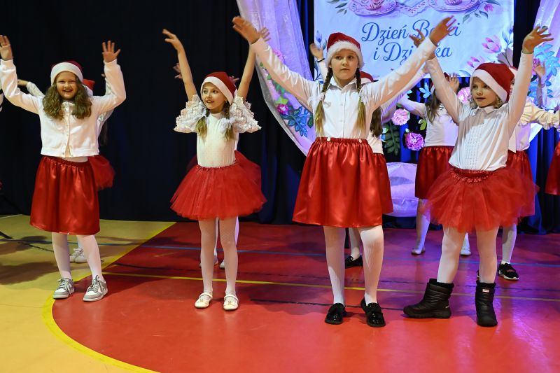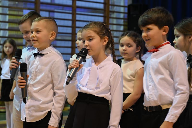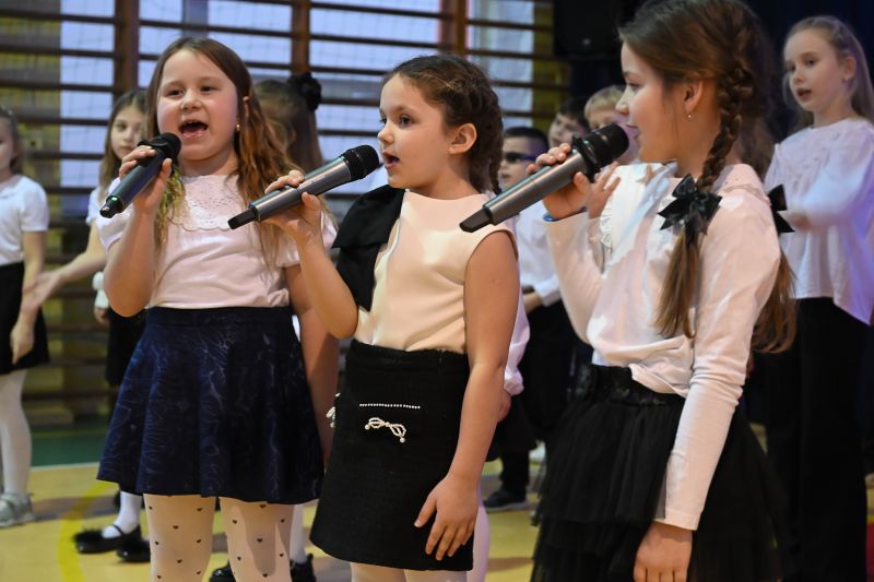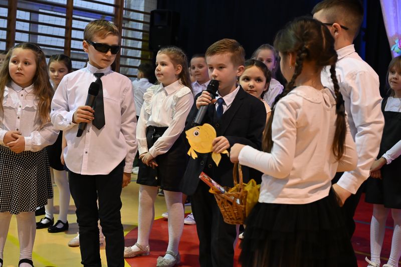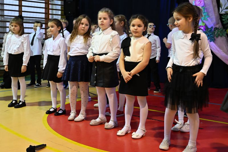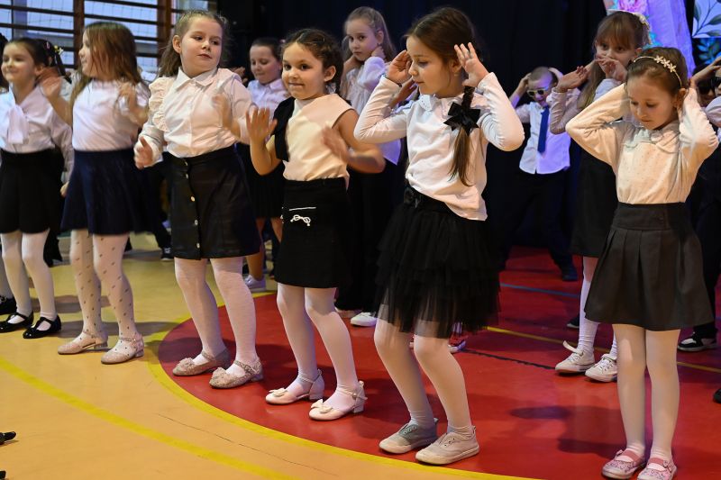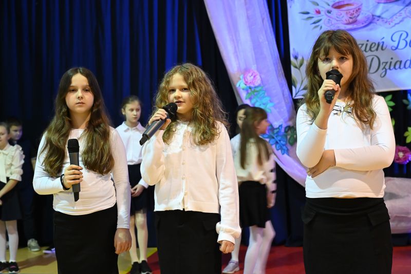 Uroczystość rozpoczął Pan Dyrektor Adam Iwanicki, który serdecznie przywitał przybyłych gości oraz przekazał moc serdecznych życzeń wszystkim Babciom i Dziadkom. Uczniowie klas pierwszych i trzecich pod kierunkiem swoich wychowawczyń przygotowali piękną uroczystość. Oprócz montażu słowno- muzycznego, goście obejrzeli także pokazy taneczne w wykonaniu swoich wnuków oraz inscenizację pt. „Rosołek”. W trakcie uroczystości Babcie i Dziadkowie mogli podziwiać swoje wnuczęta w różnych formach artystycznych. Mali artyści z przejęciem odtwarzali swoje role, a czcigodni goście ze wzruszeniem odbierali czułe słowa, kierowane pod ich adresem. Atmosfera była wspaniała, podziękowaniom nie było końca. Dzieci poczuły się prawdziwymi gospodarzami szkoły.