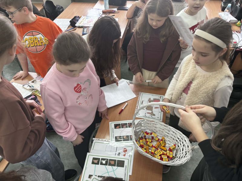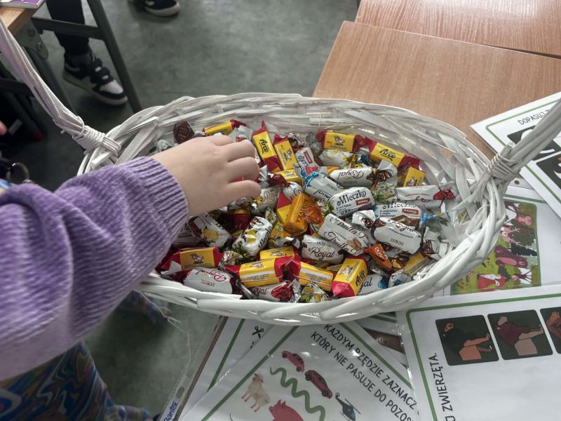 Za aktywny udział uczniowie otrzymywali drobne słodkie nagrody. Całemu wydarzeniu towarzyszyła miła atmosfera, a uczniowie chętnie podejmowali kolejne wyzwania.