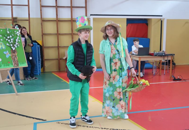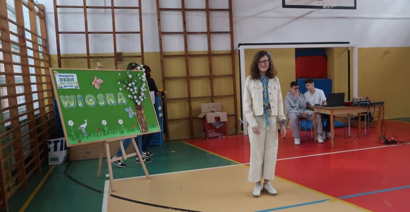Największą atrakcją był pokaz mody wiosennej. Uczniowie z wszystkich klas zaprezentowali swoje stylizacje inspirowane budzącą się do życia przyrodą. Na wybiegu można było zobaczyć stroje w kolorach zieleni, żółci i różu, a także dodatki takie jak kwiatowe wianki czy kapelusze. Pokazowi towarzyszyła muzyka, a publiczność nagradzała uczestników gromkimi brawami.