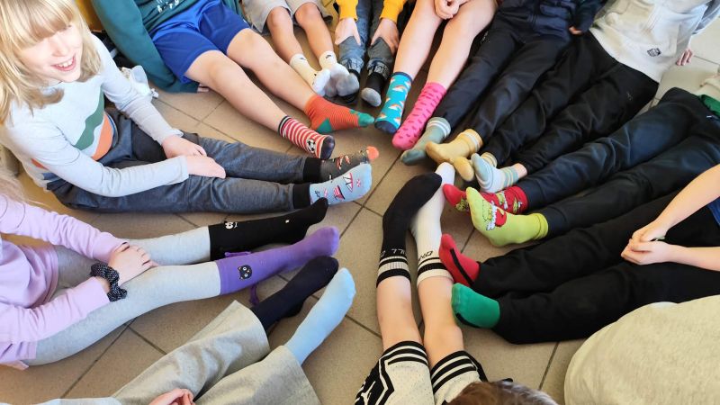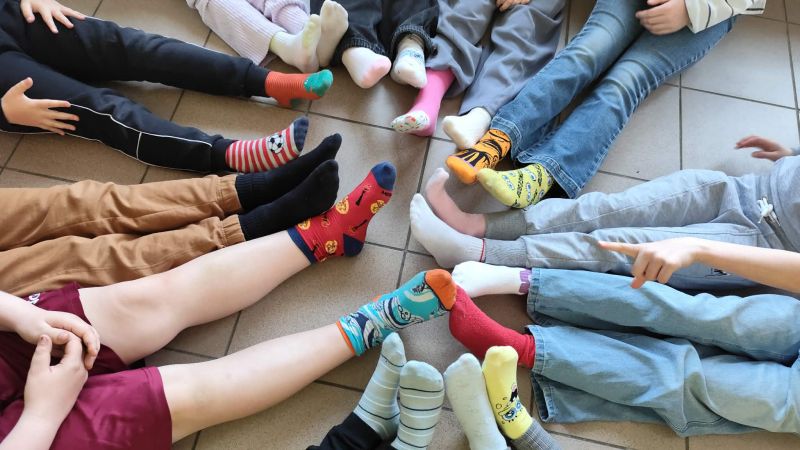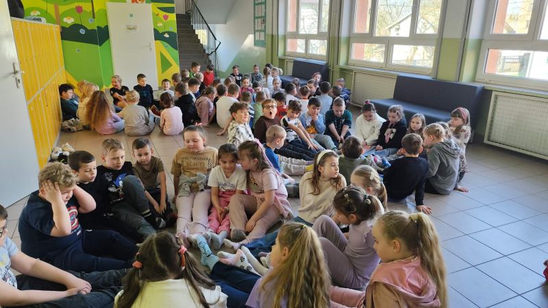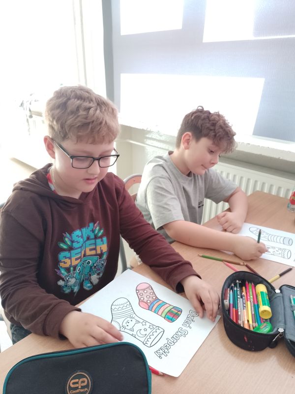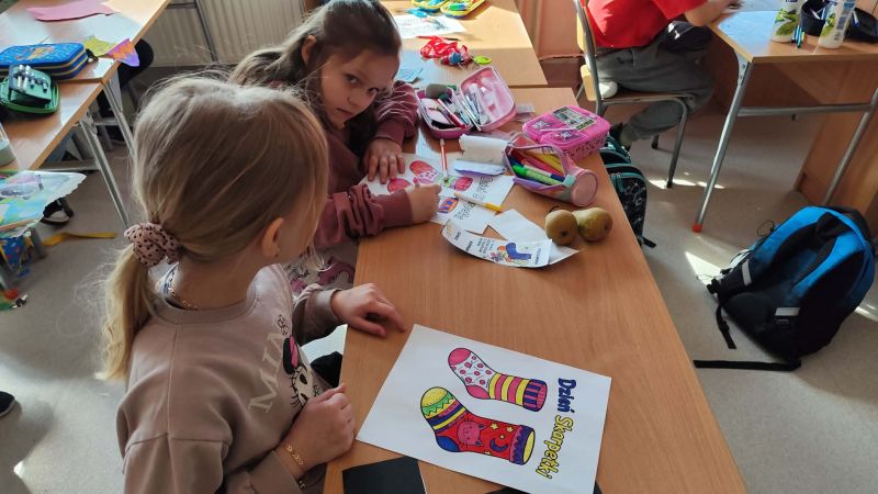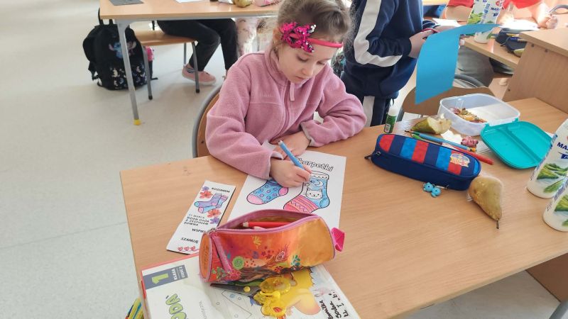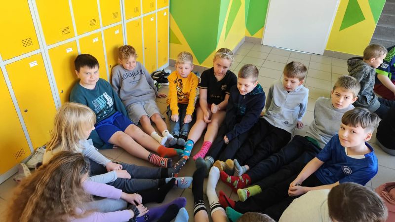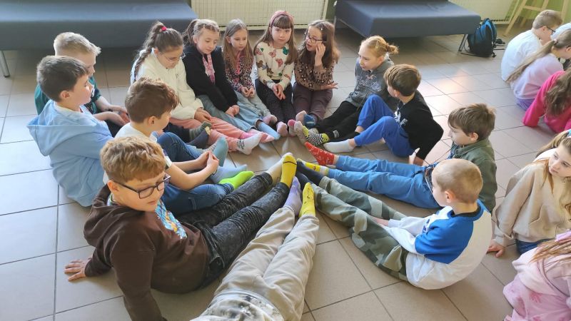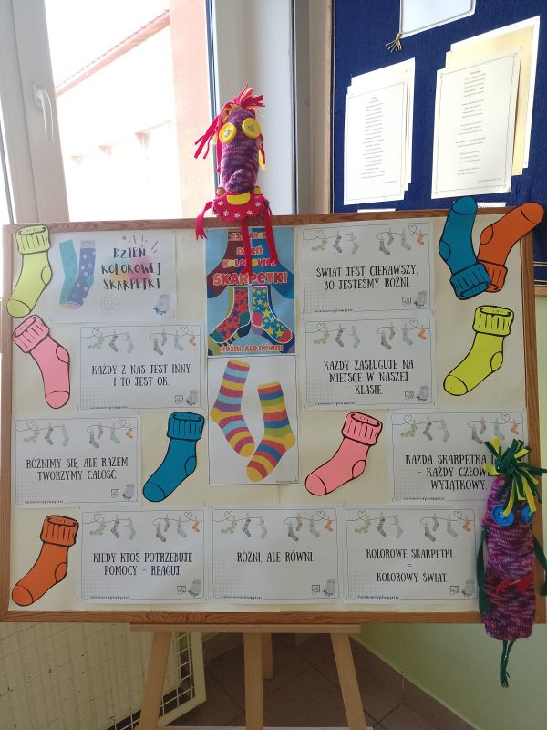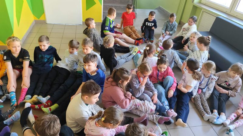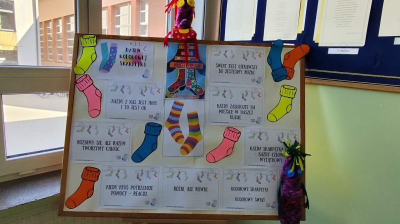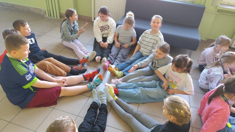 23 marca 2026 r. w klasach 1–3 obchodziliśmy Dzień Kolorowej Skarpetki - wyjątkowe wydarzenie, którego celem było uwrażliwienie uczniów na potrzeby i codzienne życie osób z Zespołem Downa oraz kształtowanie postaw akceptacji, empatii i szacunku wobec drugiego człowieka. Obchody rozpoczęły się od obejrzenia filmu edukacyjnego, który w przystępny i dostosowany do wieku dzieci sposób przybliżył temat różnorodności oraz pokazał, jak ważne jest wzajemne zrozumienie i życzliwość. Film stał się punktem wyjścia do pogadanki, podczas której uczniowie aktywnie uczestniczyli w rozmowie, dzielili się swoimi spostrzeżeniami oraz zastanawiali się, jak mogą okazywać wsparcie i akceptację innym osobom na co dzień. W dalszej części zajęć dzieci brały udział w aktywności plastycznej - kolorowały papierowe skarpetki według własnych pomysłów. Powstałe prace były niezwykle barwne i różnorodne, co pięknie oddawało symbolikę tego dnia. Uczniowie z zaangażowaniem uczestniczyli w zadaniu, rozwijając swoją kreatywność i wyobraźnię. Nie zabrakło również elementów integracyjnych - dzieci przyszły w tym dniu do szkoły w kolorowych skarpetkach, nie do pary, wyrażając w ten sposób solidarność z osobami z Zespołem Downa. Dzień Kolorowej Skarpetki był dla uczniów nie tylko radosnym i pełnym kolorów wydarzeniem, ale przede wszystkim ważną lekcją wrażliwości, zrozumienia i otwartości na drugiego człowieka.