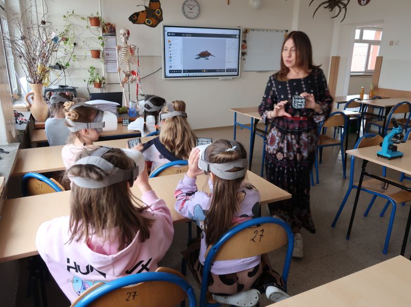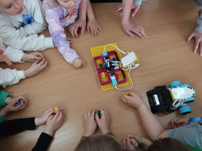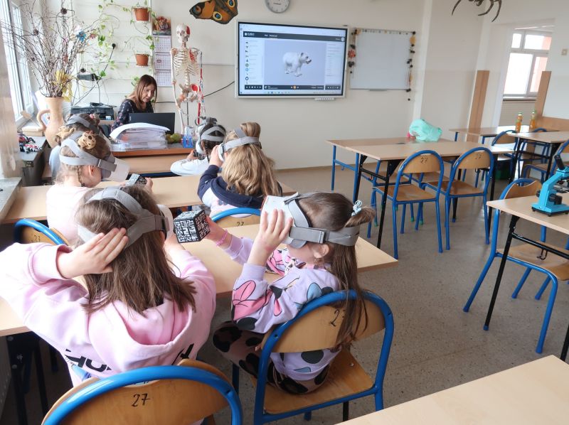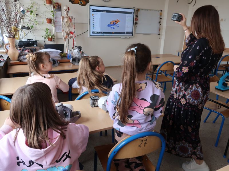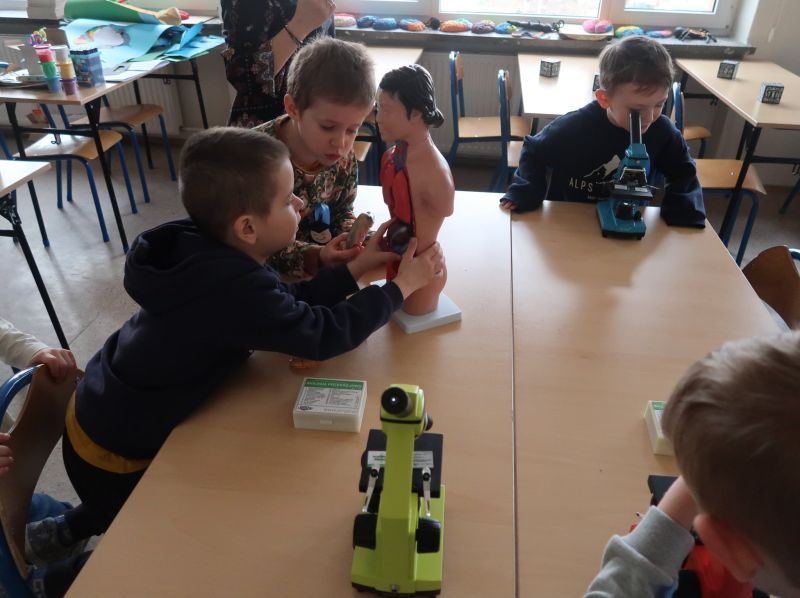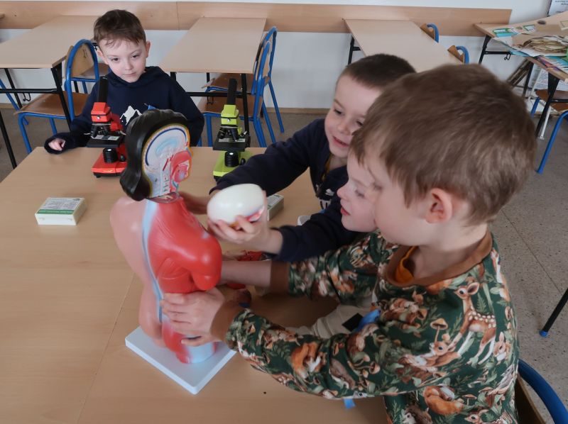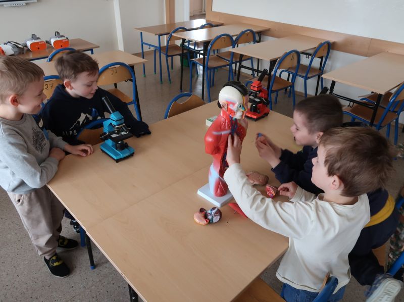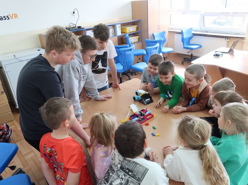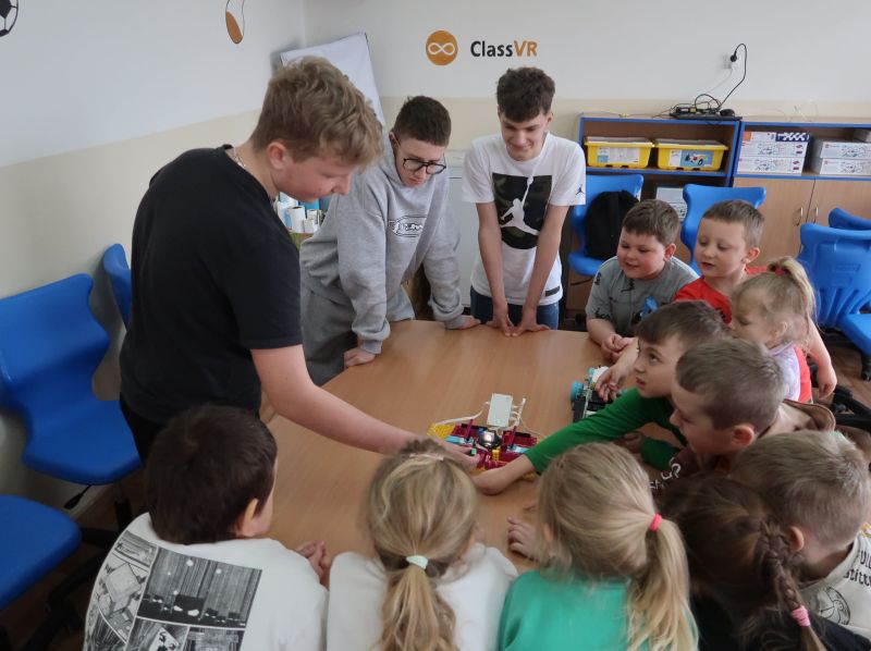 Dnia 24.03.2026 r. w Publicznej Szkole Podstawowej w Kołaczycach odbył się „Dzień Otwarty Szkoły”, na który została zaproszona najstarsza grupa 6-latków z Gminnego Przedszkola w Kołaczycach wraz z wychowawczyniami. Przedszkolaki po przekroczeniu progu naszej szkoły zostały przywitane przez Pana Dyrektora Adama Iwanickiego. Po krótkim wystąpieniu Dyrektora Szkoły rozpoczęło się przedstawienie przygotowane przez wychowawców i uczniów kl. III a i b. Klasy zaprezentowały wiersze oraz kilka układów tanecznych, po czym mali goście zostali zaproszeni do wspólnych zabaw przy muzyce. Kolejnym punktem było zwiedzanie szkoły: sal lekcyjnych, stołówki oraz świetlicy. Następnie nauczyciele wraz z dziećmi udali się do salki rewalidacyjnej, gdzie zostali podzieleni na grupy. Każda z grup miała możliwość uczestniczenia w zajęciach plastycznych, robotyki Lego oraz zajęć w wirtualnej pracowni wieloprzedmiotowej. Dzieci wykonały ozdoby wielkanocne według swojego pomysłu. Powstały bardzo ciekawe prace. Kolejne zajęcia z „Robotyki Lego” wprowadziły dzieci w niezwykle fascynujący świat kreatywnych konstrukcji. Były to zajęcia, które łączą zabawę najpopularniejszymi na świecie klockami razem z nauką w postaci podstaw programowania. Uczestnicy mieli okazję zapoznać się z pojazdami, które przy użyciu inteligentnego oprogramowania poruszały się. Dzieci z dużym zaangażowaniem uczestniczyły w tych zajęciach. Zaproszeni goście zachwyceni byli również zajęciami w pracowni przyrodniczej, które prowadziła p. Beata Opałka, gdzie mogli doświadczyć niesamowitych wrażeń podczas oglądania obrazów w rozszerzonej rzeczywistości 3D przy użyciu okularów VR i kostki do mieszanej rzeczywistości, a także przenieść się do wirtualnego świata podczas oglądania filmów „Podwodna przygoda” i „Bliskie spotkanie z niedźwiedziem polarnym”. Z dużym zaciekawieniem obserwowali też pod mikroskopem „życie w kropli wody” i odkrywali tajemnice budowy ciała człowieka. Po dniu pełnym wrażeń dzieci dotarły do sali, w której czekał na nie pyszny poczęstunek. Na zakończenie Dnia Otwartego, każdy przedszkolak dostał w prezencie upominek. Dziękujemy za wspólny, miło spędzony czas i mamy nadzieję na ponowne spotkanie w szkole już we wrześniu. Mamy nadzieję, że nauka w naszej szkole będzie początkiem wspaniałej przygody na drodze do zdobywania wiedzy i innych przydatnych w życiu umiejętności.