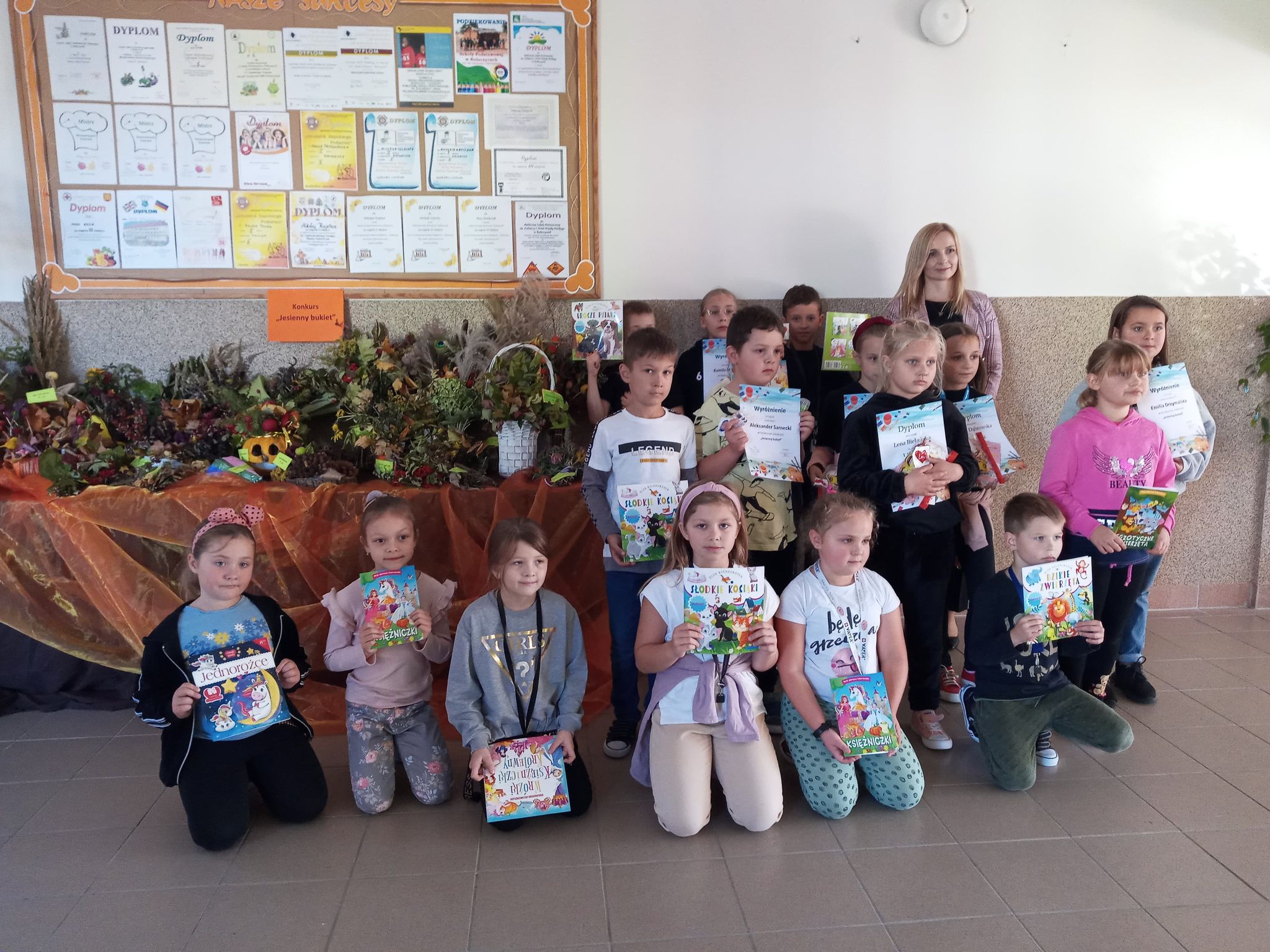 W dniu 18 października 2022 r. został rozstrzygnięty Szkolny Konkurs pod nazwą „Jesienny bukiet”, organizowany przez Samorząd Szkolny. Adresatami konkursu byli uczniowie klas I – III. Przedmiotem konkursu było wykonanie jesiennego bukietu z darów jesieni: liści, kasztanów, żołędzi, itp. Celem konkursu było pobudzenie i rozwijanie wyobraźni i aktywności twórczej dzieci inspirowanej pięknem jesiennej przyrody. Konkurs cieszył się dużym zainteresowaniem. Wszystkie prace można podziwiać na korytarzu szkolnym, który został ozdobiony wieloma oryginalnymi i barwnymi bukietami.