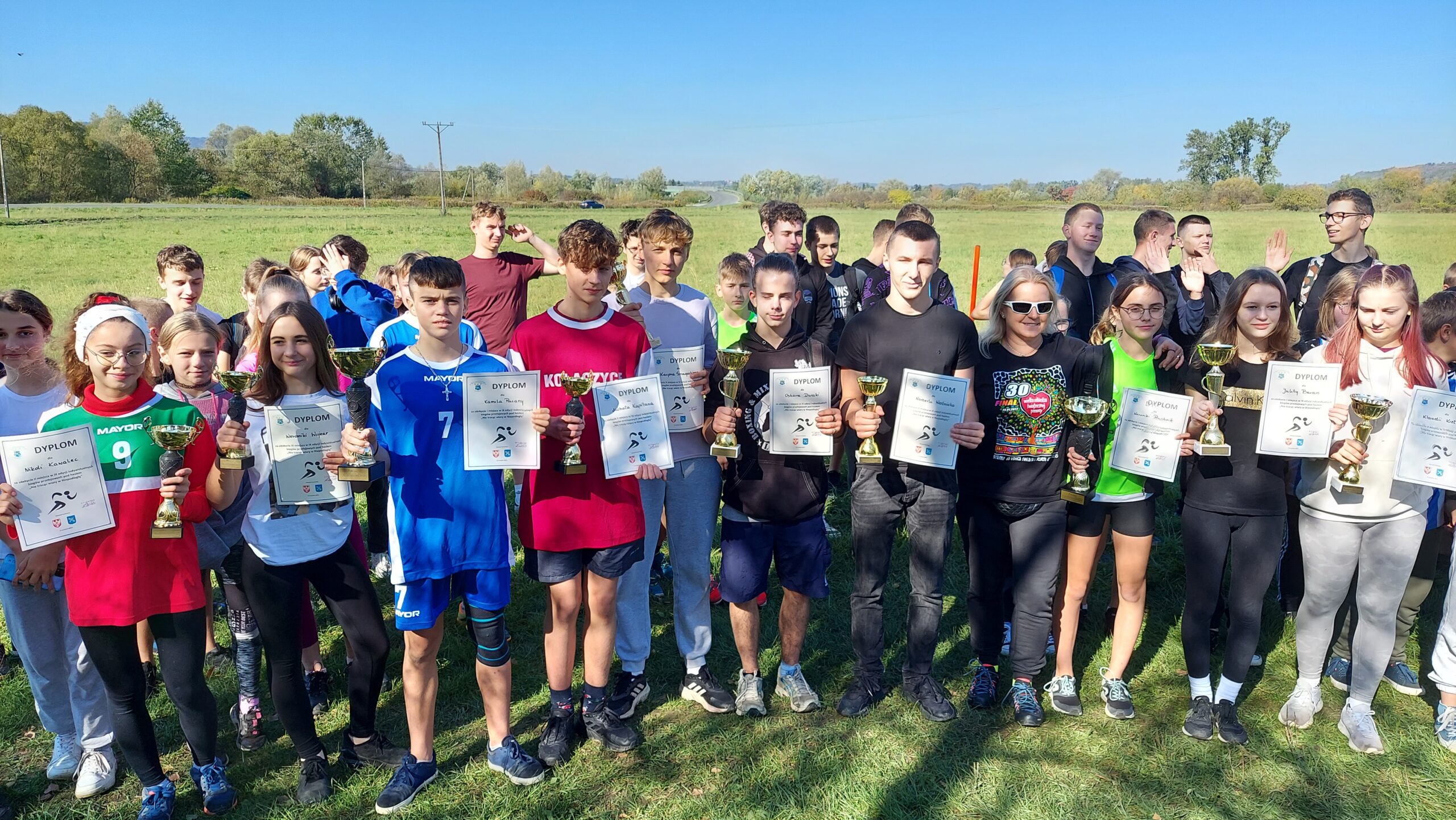 Liceum Ogólnokształcące w Kołaczycach zorganizowało IX edycje indywidualnych biegów przełajowych pod hasłem ,,Nie tracąc wiary w Niepodległą’’, upamiętniających 83 rocznicę Powstania Podziemnego Państwa Polskiego. Patronat honorowy nad imprezą objął Starosta Jasielski Adam Pawluś oraz Burmistrz Kołaczyc – Stanisław Żygłowicz. Zawody odbyły się w dniu 07.10.2022r. na stadionie Ostoi w Kołaczycach. Dyrektor Liceum Ogólnokształcącego Pan Antoni Salacha przywitał wszystkich gości oraz uczestników zawodów i przedstawił krótki rys historyczny powstania Podziemnego Państwa Polskiego. Rywalizacja odbywała się w czterech kategoriach: w pierwszej pobiegły dziewczęta i chłopcy ze szkoły podstawowej a w drugiej uczniowie szkół średnich. W kategorii chłopców II miejsce zajął Michał Kapitan. W czołówce uplasował się również Kacper Cyran zajmując V miejsce. W kategorii dziewcząt najlepszy wynik uzyskała Dominika Wnęk zajmując V miejsce. W biegach udział wzięli uczniowie szkół podstawowych z Bieździedzy, Kołaczyc, Sowiny, Krajowic, Brzysk, Błażkowej, oraz młodzież z Liceum Ogólnokształcącego w Kołaczycach. Na zakończenie gratulacje wszystkim uczestnikom a Puchary i dyplomy zwycięzcom wręczyli: Pan Dyrektor szkoły Antoni Salacha oraz Pan Artur Gałuszka. SP Kołaczyce reprezentowali: Aleksandra Gorgosz, Rak Karolina, Wojdyła Karolina, Kordek Kinga, Hendzel Katarzyna, Wnęk Dominika, Salwik Anna, Matysik Julia, Cyran Kacper, Kołeczek Bartek, Kasprzyk Jakub, Kapitan Michał, Maciejowski Jan, Wojciechowski Dawid.